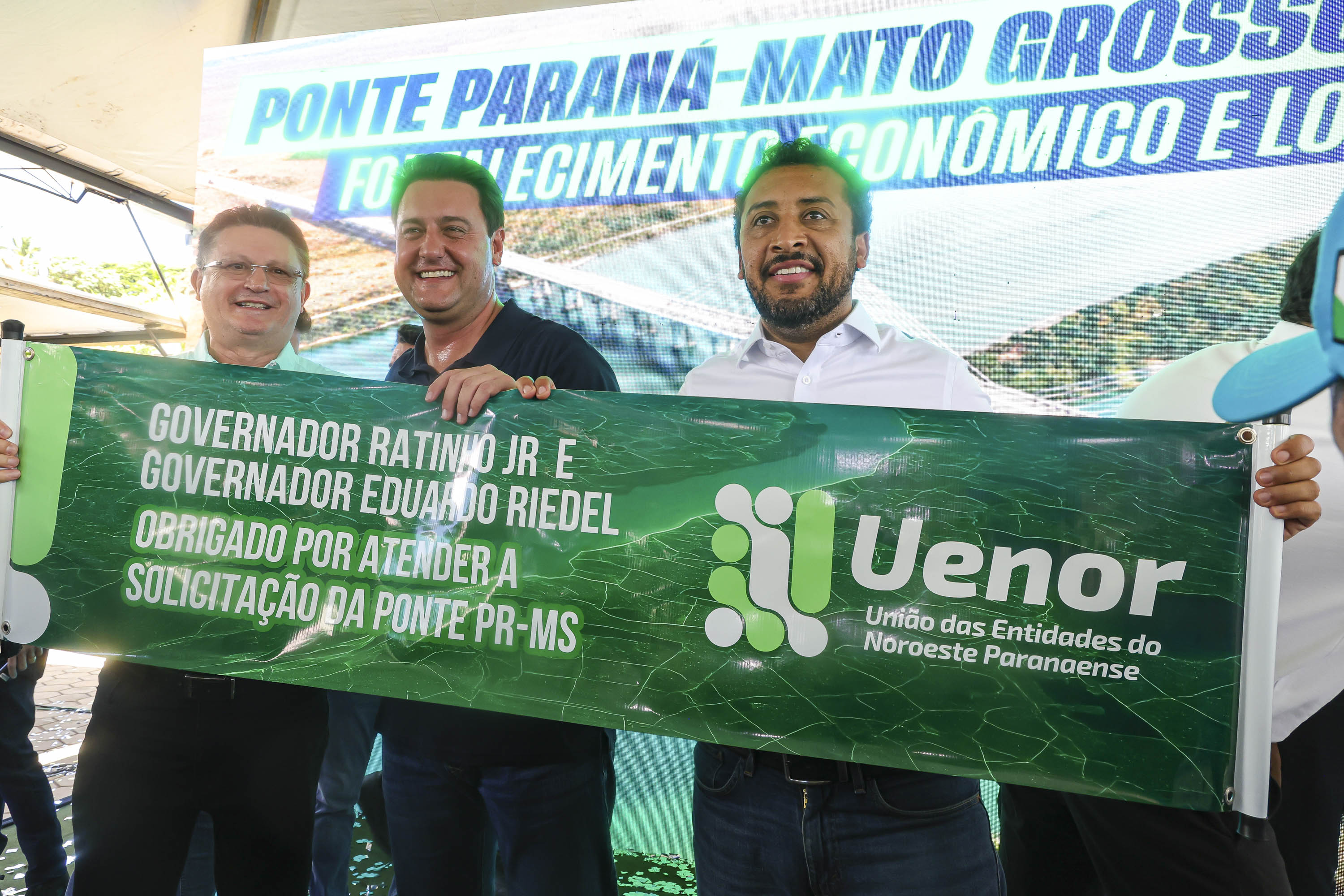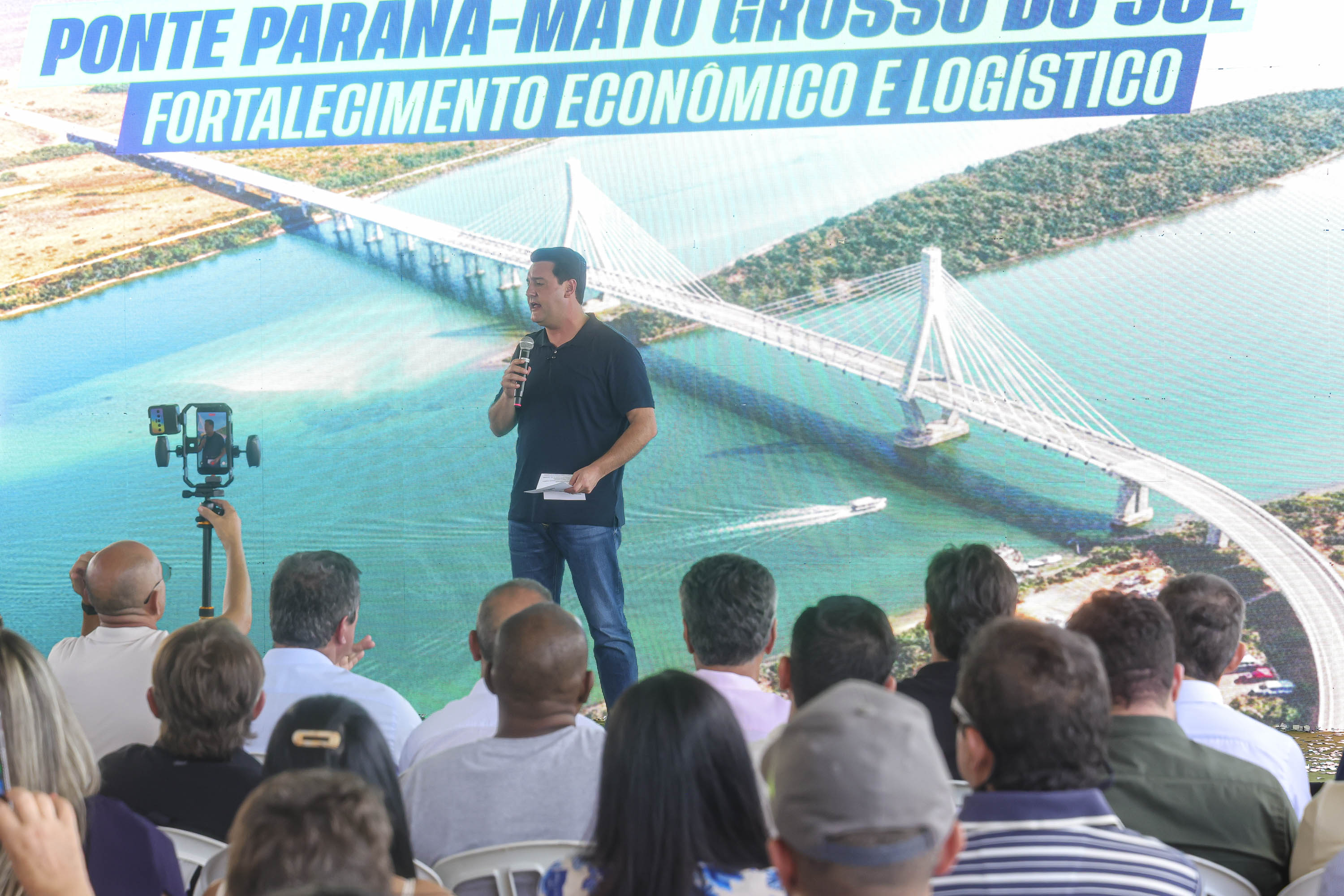 “Essa ponte é uma transformação da realidade, tanto do Mato Grosso do Sul quanto do Paraná, porque ela cria uma nova rota de desenvolvimento. Ela vai encurtar em 100 km a rota dos caminhões que vêm do Mato Grosso do Sul para o Paraná”, celebrou o governador paranaense. “Um trabalho que foi demorado, um investimento do setor produtivo de quase R$ 2 milhões no anteprojeto, que foi doado para os Estados. Passamos agora a contratar as etapas: o estudo ambiental, porque uma obra desse porte você tem que ter toda a segurança técnica, jurídica. Depois dessa fase podemos dar sequência na licitação”, explicou Ratinho Junior.