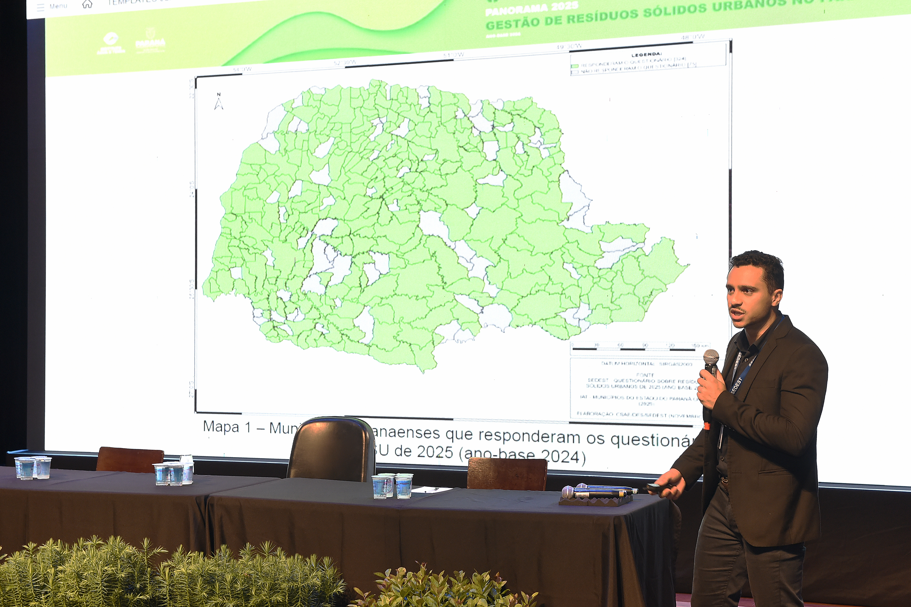 Durante o evento, foram apresentados o Panorama de 2025 e os formulários de 2026 sobre Gestão de Resíduos Sólidos Urbanos e de Gestão de Associações e Cooperativas de Catadores. Embora o Estado seja referência no tema, os desafios persistem: 86% dos municípios fazem coleta seletiva na área urbana, mas apenas 20% conseguem atender a área rural. Além disso, apenas 66 prefeituras declararam equilíbrio financeiro total na gestão do serviço.