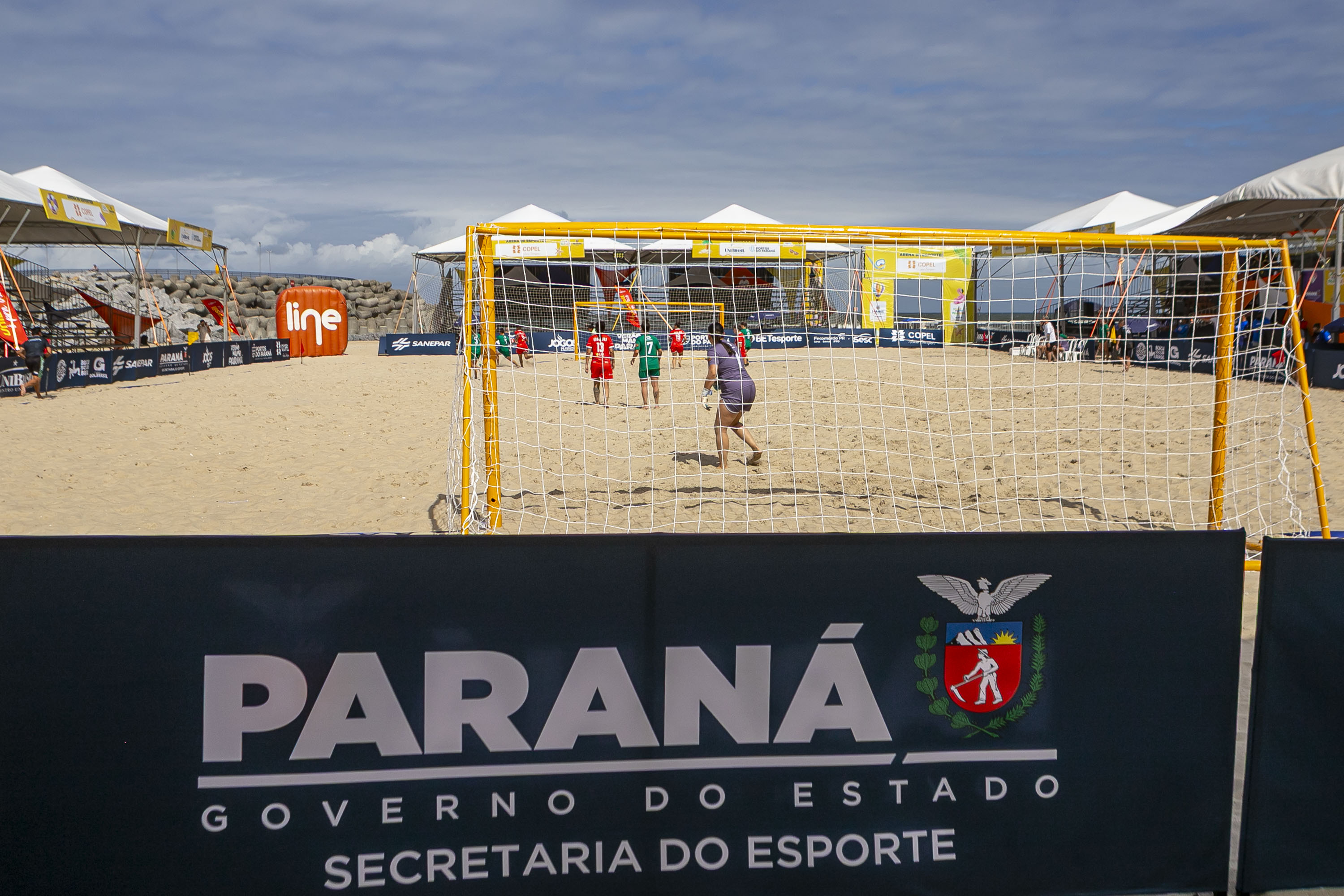 A Arena de Esportes do Verão Maior Paraná é palco da 1ª etapa do Circuito Brasileiro de Beach Soccer, que começou em Matinhos nesta sexta-feira (23) e segue até domingo (25) nas areias de Caiobá. É o início da temporada da modalidade, que contará ainda com uma segunda fase também no Litoral do Estado, o Brasil Open, no final de semana seguinte, e outras oito espalhadas pelo Brasil em 2026.
