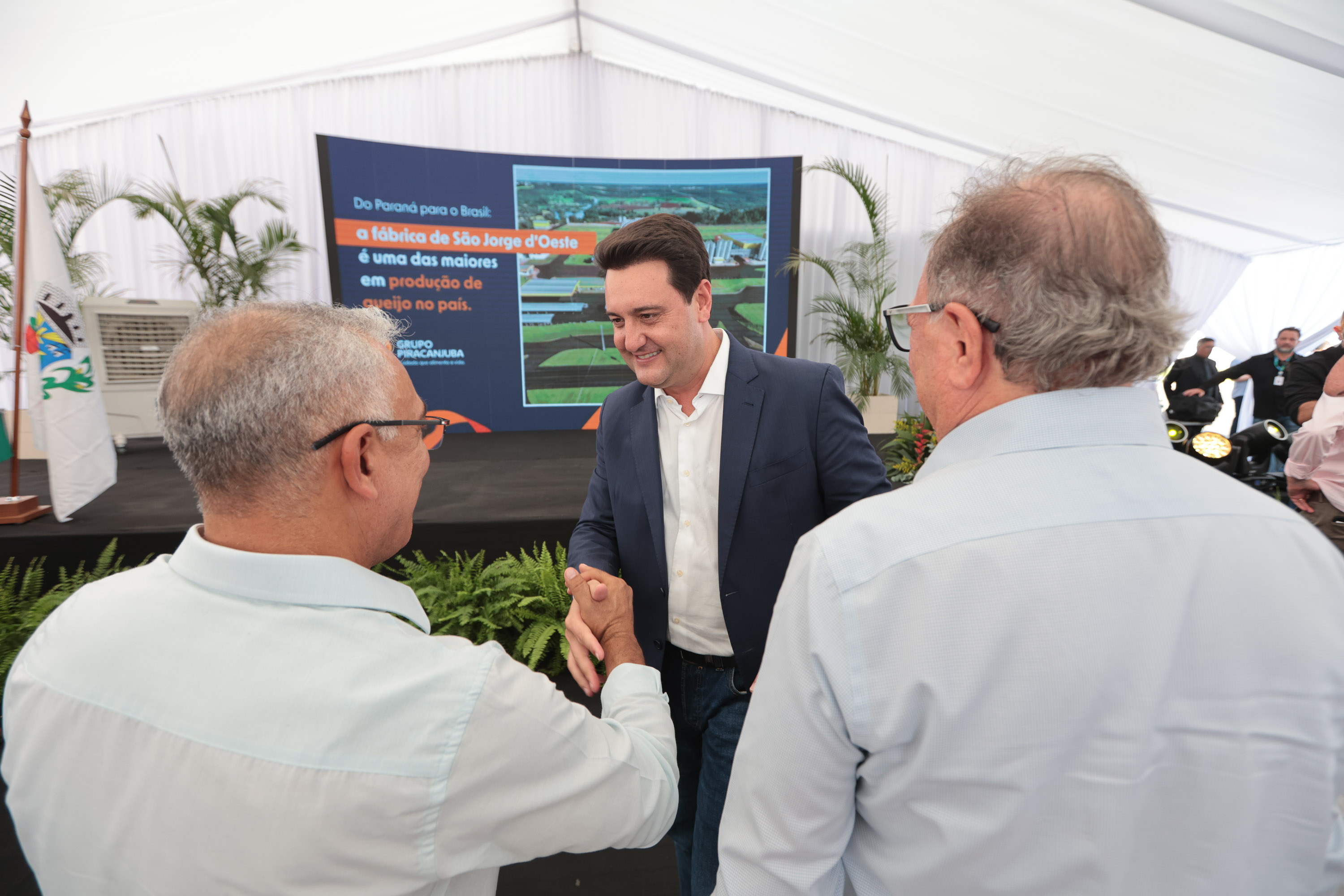 PRESENÇAS - Também acompanharam a inauguração da fábrica o secretário estadual da Agricultura e do Abastecimento, Marcio Nunes; os deputados federais Pedro Lupion, Paulo Litro e Vermelho; o presidente da Assembleia Legislativa do Paraná, Alexandre Curi; os deputados estaduais Adão Litro e Luís Corti; o presidente do Grupo Piracanjuba, Luiz Cláudio Lorenzo; o prefeito em exercício de São Jorge d'Oeste, Gilmar Paixão; prefeitos de municípios vizinhos, vereadores e secretários municipais.