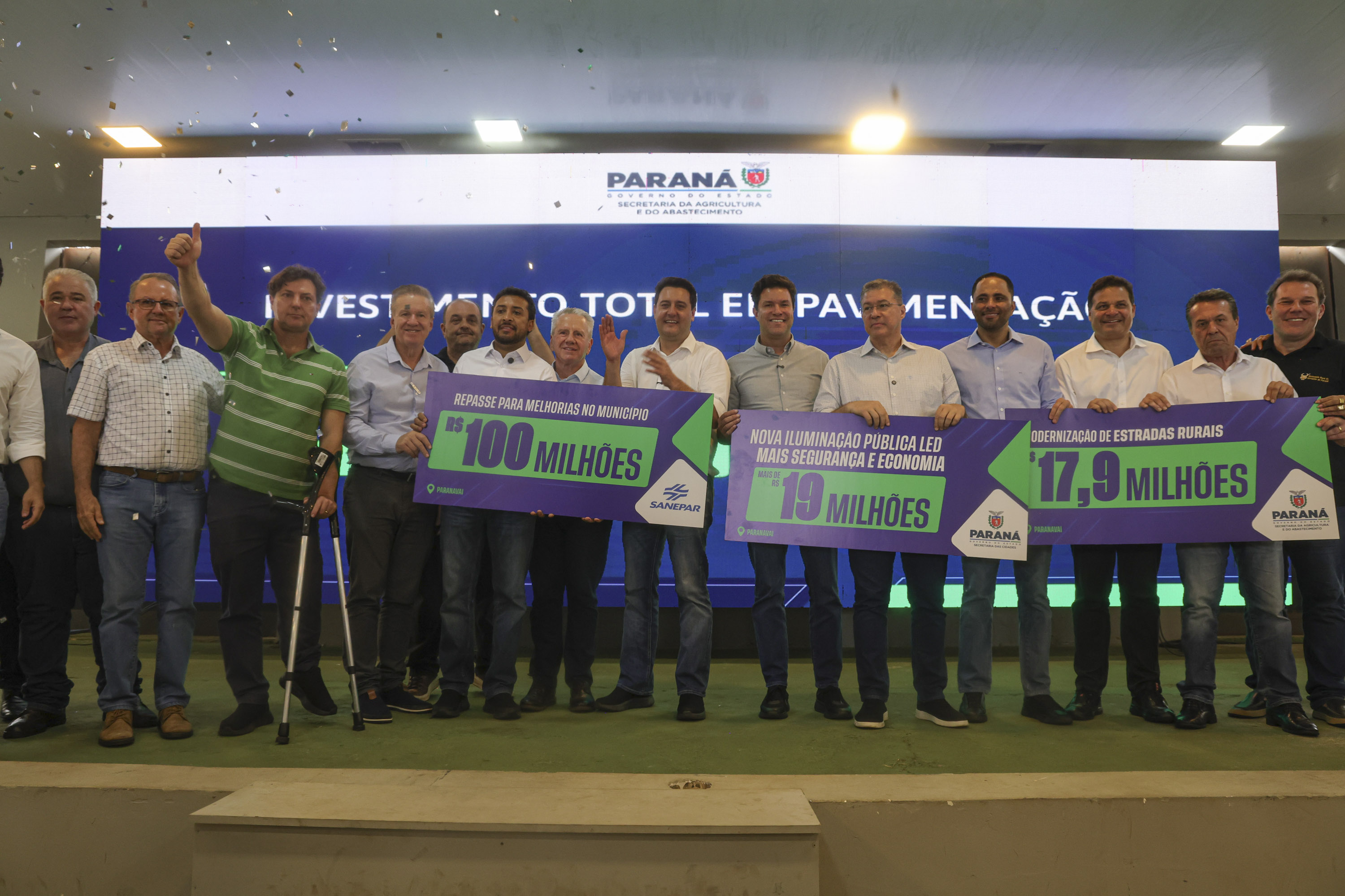 A cidade de Paranavaí, no Noroeste do Estado, foi contemplada nesta quinta-feira (12) com um pacote de investimentos voltado à infraestrutura urbana, com destaque para iluminação pública. Os anúncios somam R$ 119,4 milhões, sendo R$ 100 milhões vinculados à renovação da concessão da Sanepar e R$ 19,4 milhões para a substituição da iluminação convencional por luminárias de LED. Os recursos foram anunciados durante a visita do governador Carlos Massa Ratinho Junior à 54ª ExpoParanavaí.