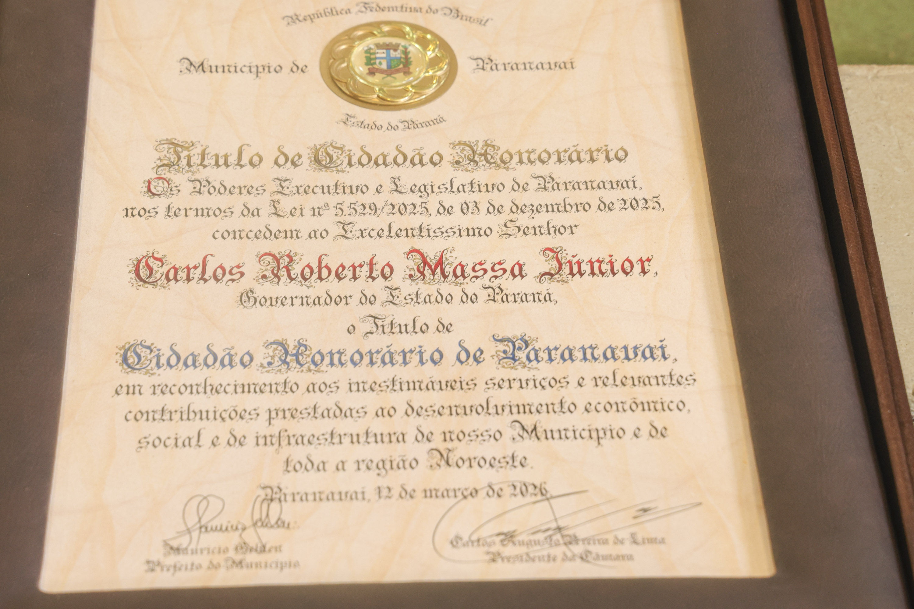 PRESENÇAS – Também participaram da solenidade os secretários estaduais da Agricultura e Abastecimento, Marcio Nunes; da Infraestrutura e Logística, Sandro Alex; da Saúde, Beto Preto; do Trabalho, Qualificação e Renda, Do Carmo; o chefe de gabinete da Governadoria, Darlan Scalco; o subchefe da Casa Civil, Lúcio Tasso; o presidente da Assembleia Legislativa do Paraná, Alexandre Curi; os deputados estaduais Luiz Cláudio Romanelli, Anibelli Neto, Luís Corti, Soldado Adriano José e Doutor Leônidas; o presidente da Associação dos Municípios do Noroeste do Paraná (Amunpar) e prefeito de Mirador, Fabiano Travian; os presidentes da Sociedade Rural do Noroeste do Paraná, Mario Lourenço de Almeida Filho, e da Câmara de Vereadores de Paranavaí; Carlos Augusto; o vice-prefeito Pedro Baraldi; e demais autoridades.