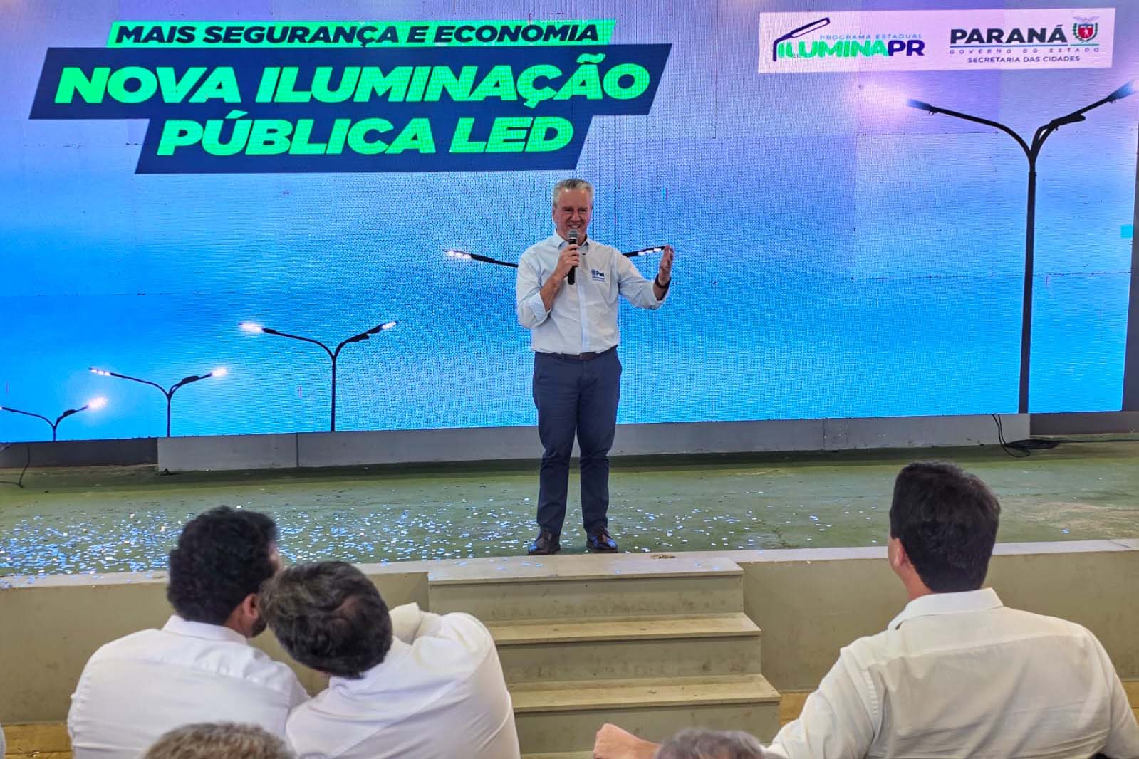 “Nós temos um programa chamado Ilumina Paraná, o maior programa de transformação elétrica e de iluminação que nós temos no Brasil. Chegamos a marca de 70% dos municípios já com essa mudança da iluminação tradicional para a iluminação elétrica. A lâmpada em LED gasta menos energia e deixa o bairro mais iluminado”, comentou o secretário de Cidades, Guto Silva, que também elencou os benefícios para a segurança pública.