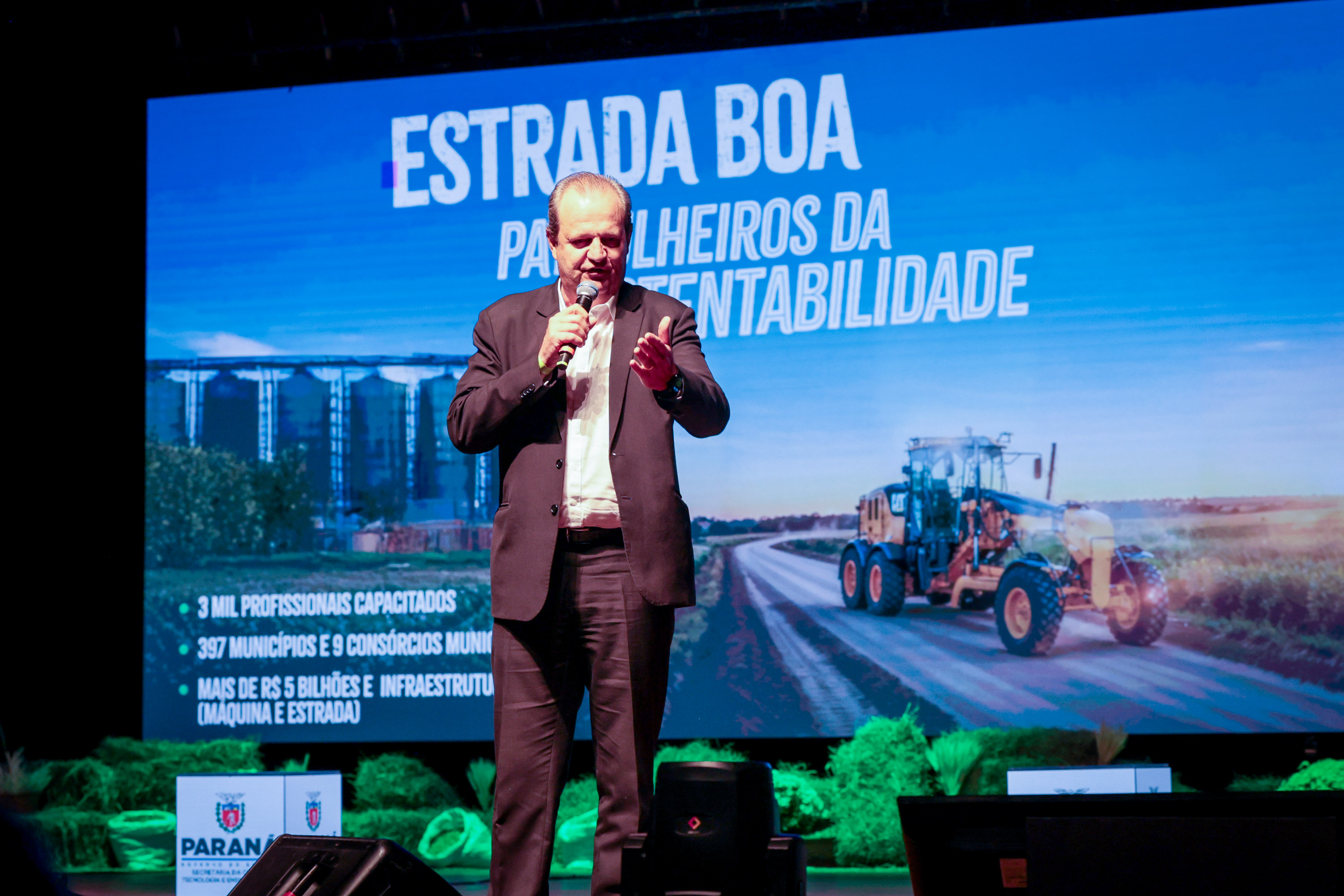 Ele também lembrou que o Estado modernizou o parque de máquinas das prefeituras. “O Paraná fez a maior compra de maquinários da América do Sul, com mais de dois bilhões em novas máquinas. São retroescavadeiras, pás carregadeiras, motoniveladoras, caminhões e equipamentos modernos que dão às prefeituras condições de atender melhor a zona rural. Agora, com os Patrulheiros da Sustentabilidade e esse maquinário tecnológico, queremos adequar estradas de forma ambientalmente correta, com muito cuidado”, enfatizou.