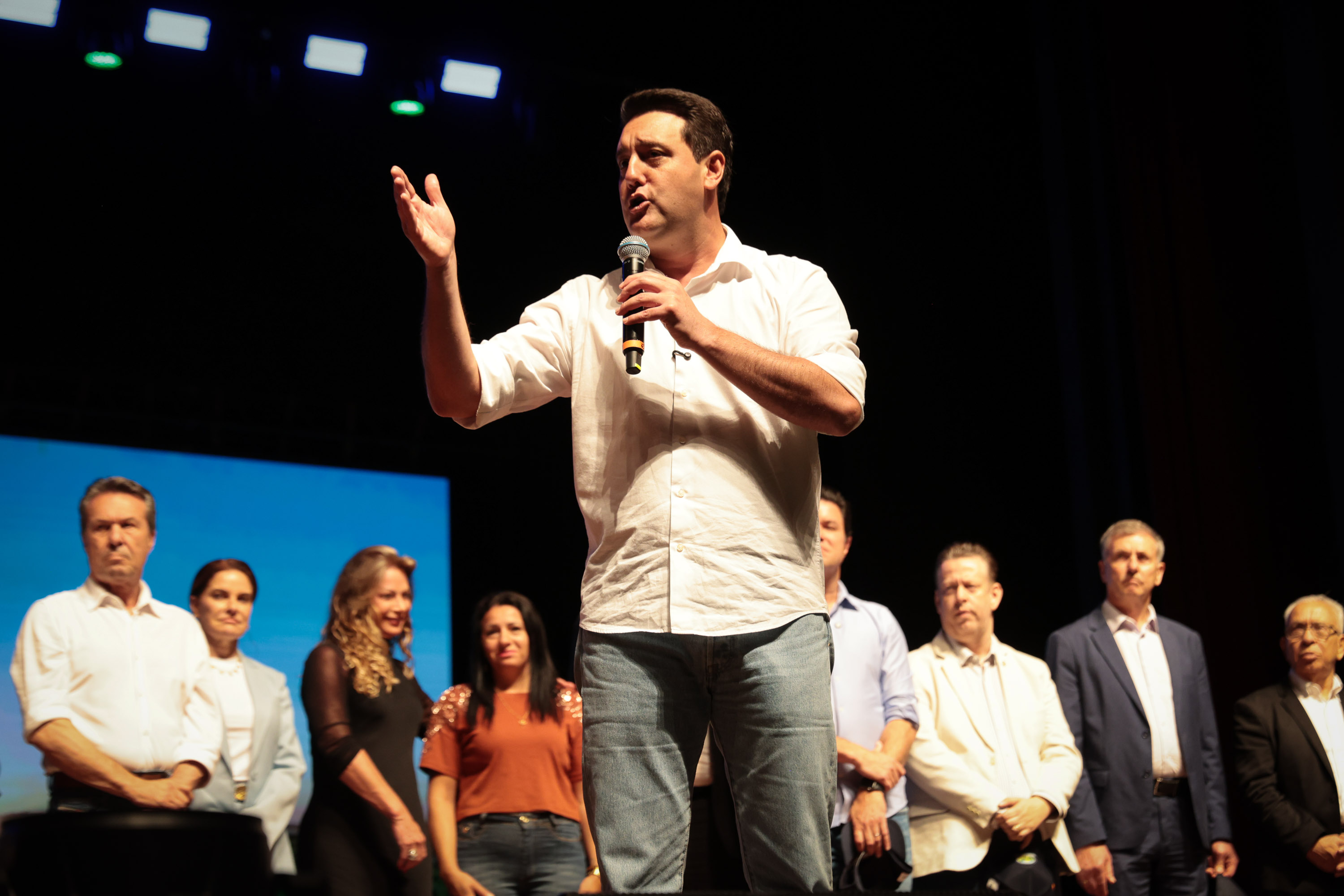 PRESENÇAS – Também participaram do lançamento do programa o vice-governador Darci Piana; o secretário das Cidades, Guto Silva; o secretário da Saúde, Beto Preto; o secretário da Administração e da Previdência, Luizão Goulart; o secretário do Trabalho, Qualificação e Renda, Do Carmo; o diretor-presidente do Detran-PR, Santin Roveda; o diretor-presidente do Instituto Água e Terra, Everton Souza; o diretor-presidente do IDR-Paraná, Natalino Avance de Souza; o diretor-presidente da Adapar, Otamir Cesar; o presidente da Assembleia Legislativa do Paraná, deputado Alexandre Curi; os deputados estaduais Anibelli Neto, Hussein Bakri (líder do Governo), Ademar Traiano, Moacyr Fadel, Luís Corti, Soldado Adriano José, Adão Litro e Wilmar Reichembach; prefeitos e demais autoridades.