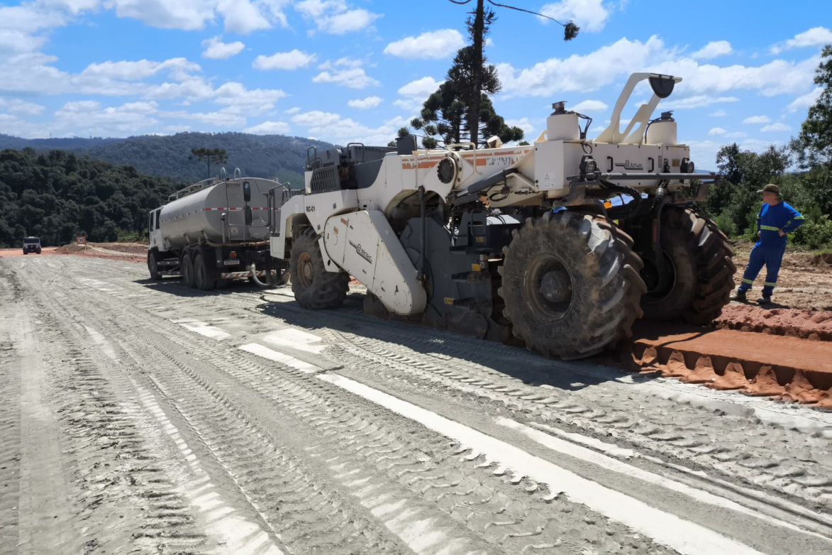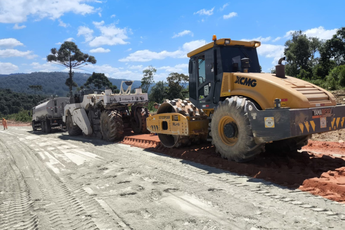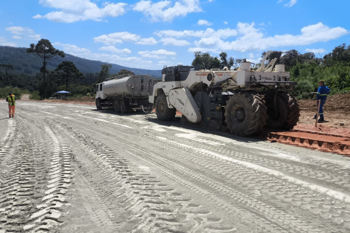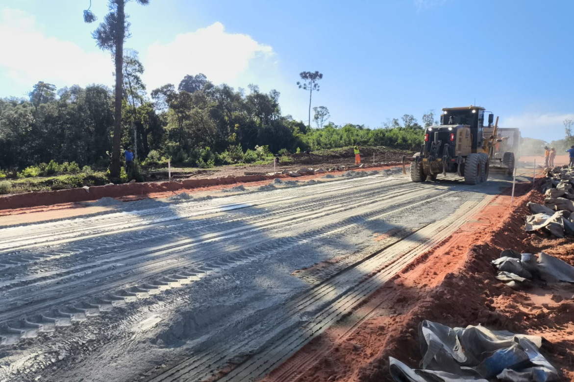 A pavimentação da PR-092 em Doutor Ulysses, na Região Metropolitana de Curitiba, iniciou a execução de solo-cimento no trecho, material que vai compor a sub-base e a base do novo pavimento asfáltico. A obra atingiu a marca de 27,2% na medição mais recente, de março, marcando um investimento de R$ 15,4 milhões até o momento.