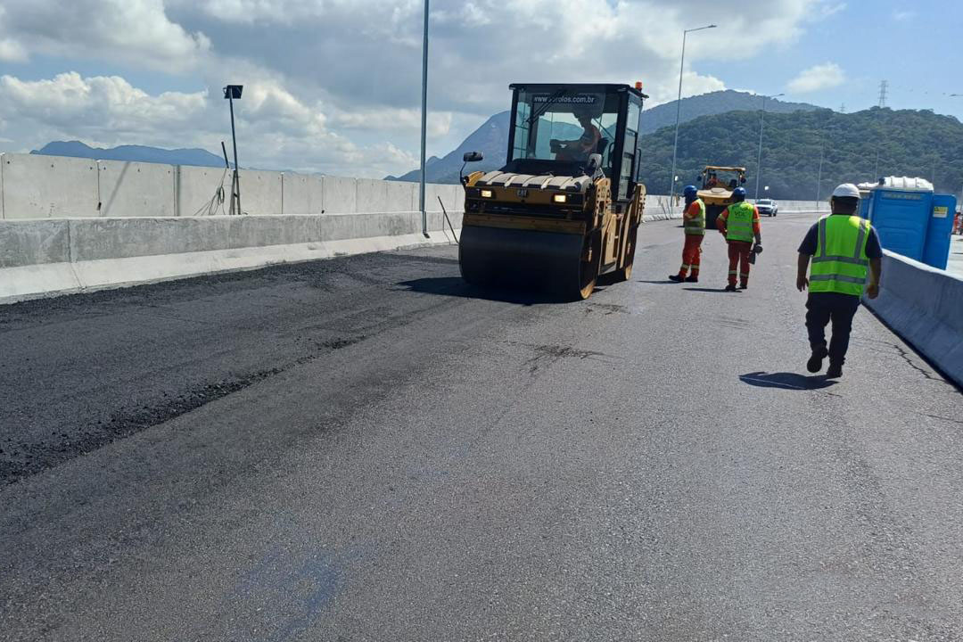 Também seguem em andamento a instalação de barreiras de concreto New Jersey (dispositivo que vai dividir o sentido das pistas) instaladas, assim como postes de iluminação pública e os guarda-corpos que dividem a via da calçada e das laterais externas, garantindo a segurança de pedestres e ciclistas.