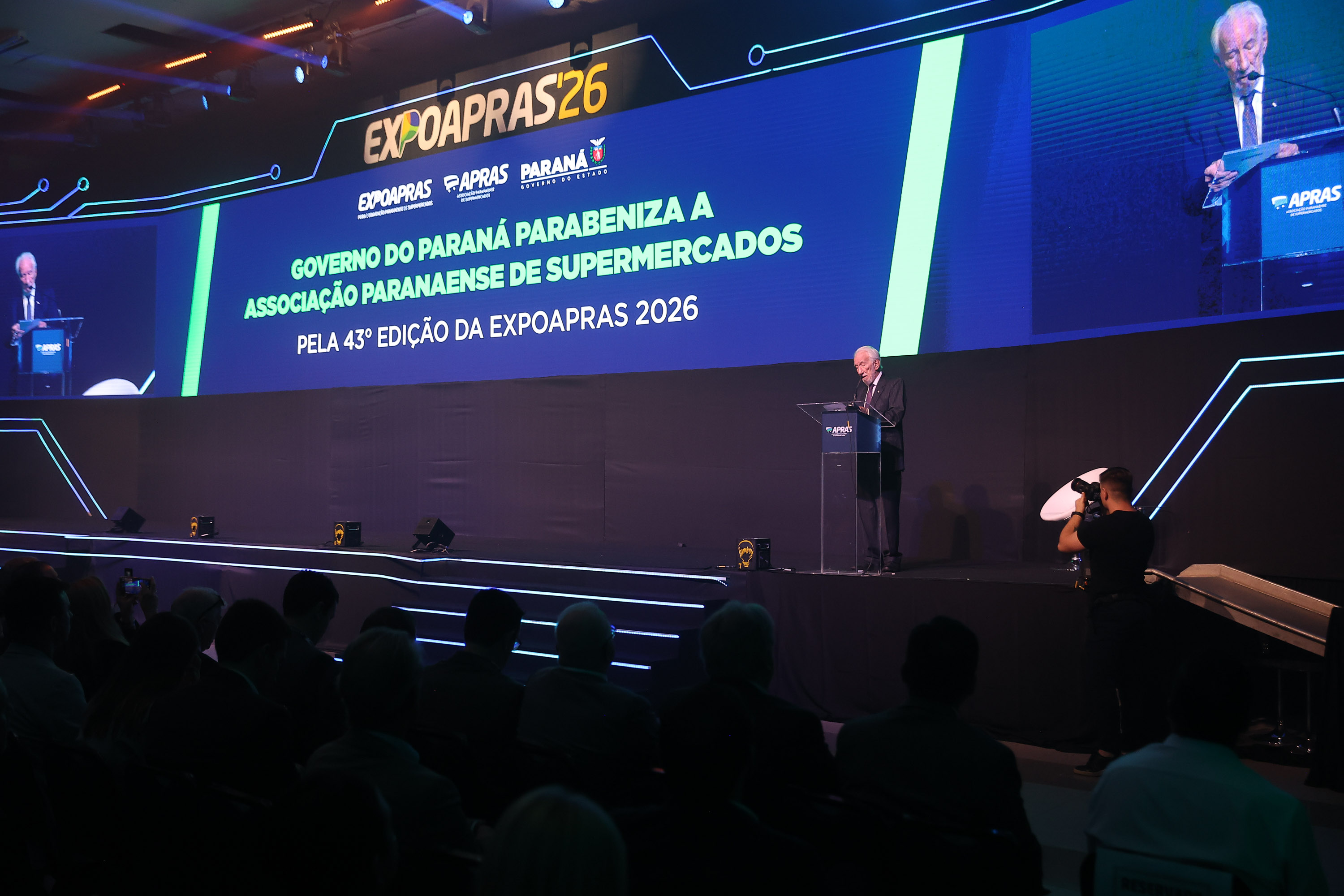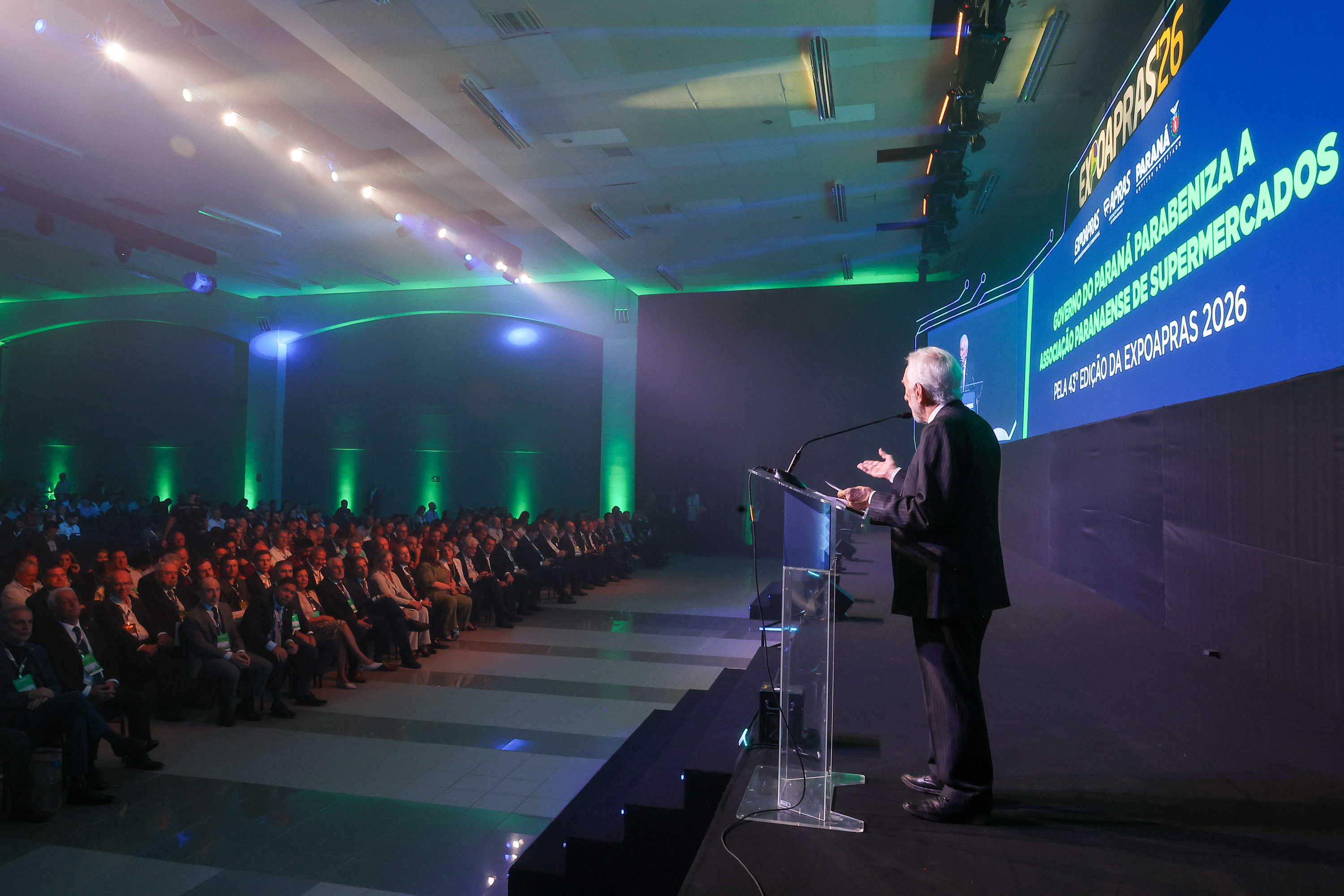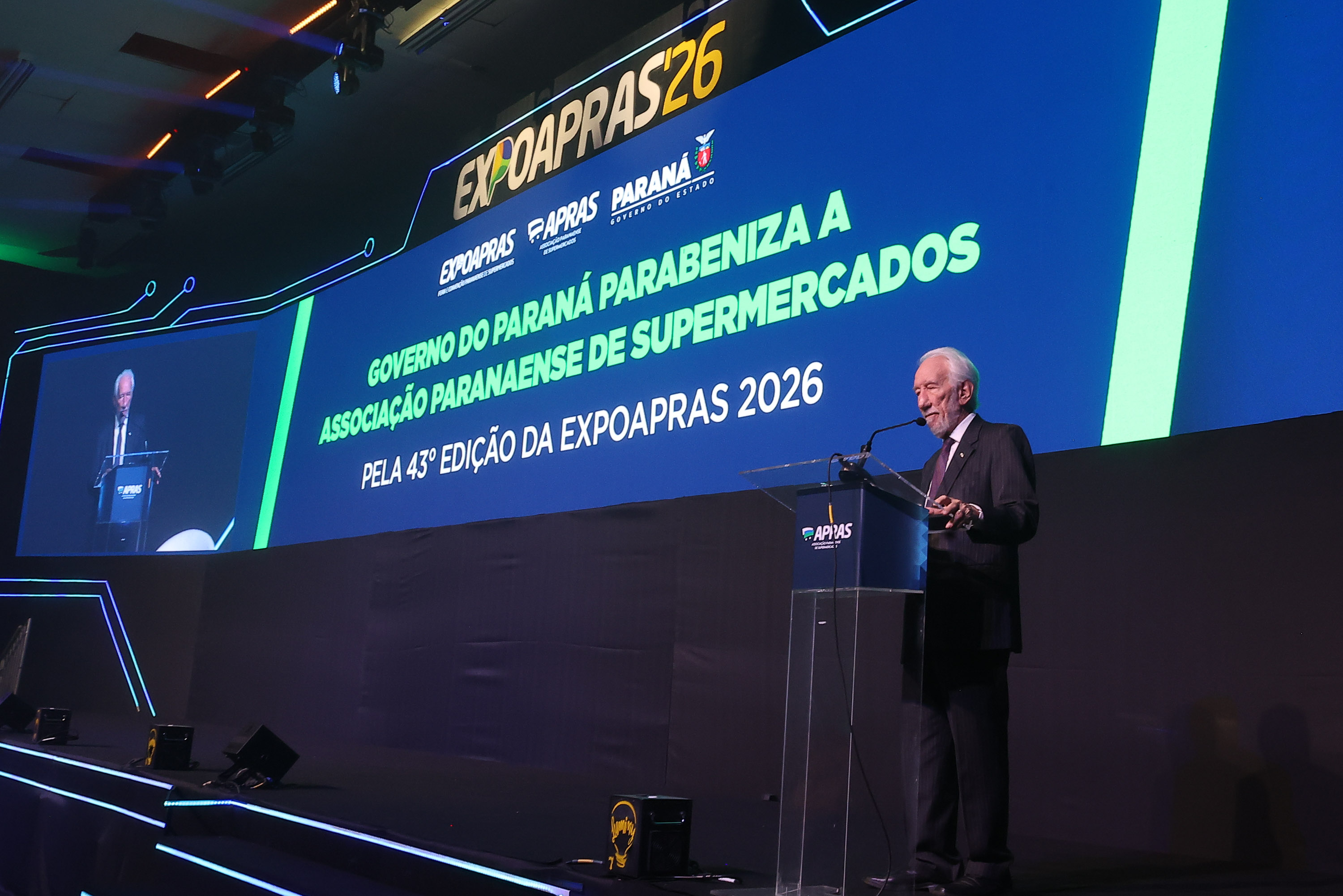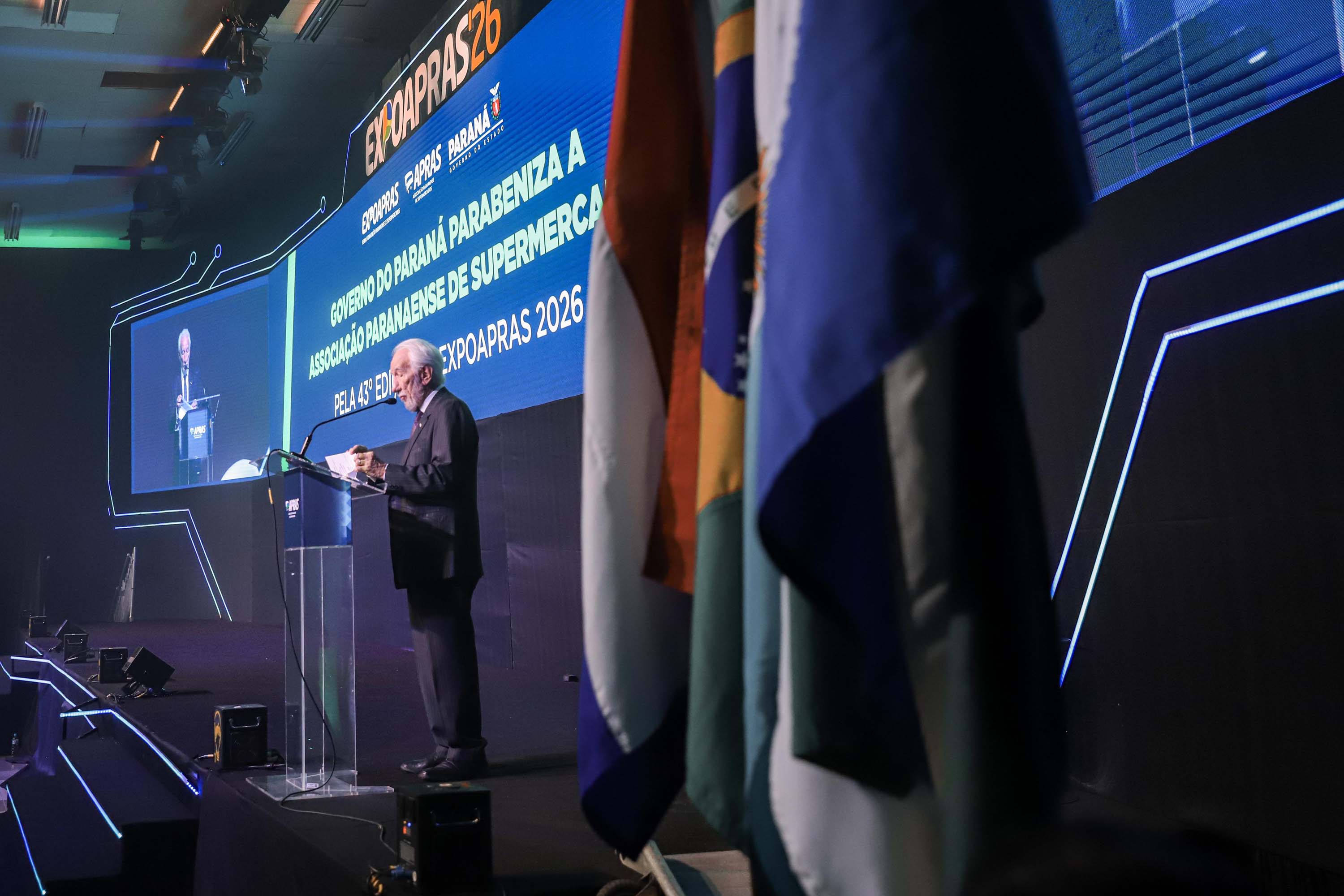 “O Paraná tem orgulho de ter supermercados de qualidade reconhecidos nacionalmente. São mais de 20 mil unidades no Estado, meio milhão de empregos e R$ 65 bilhões de faturamento anual só nesse segmento, que cresce junto com o Paraná”, acrescentou. “Aqui nós produzimos, comercializamos e exportamos para mais de 180 países no mundo inteiro. Somos o supermercado do mundo.”