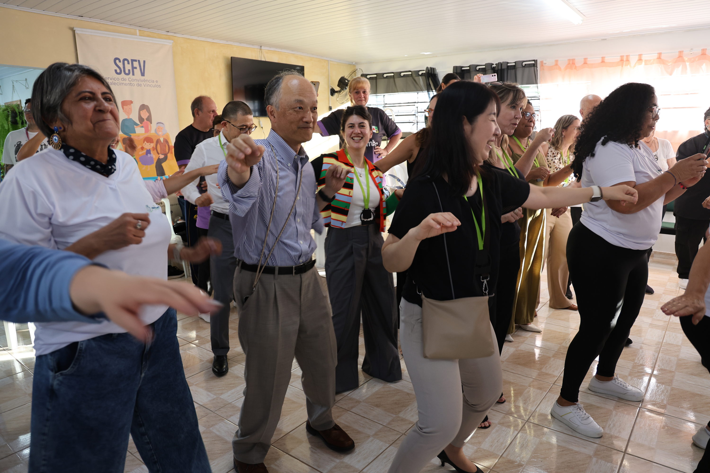 INTERCÂMBIO CULTURAL - Além das trocas técnicas, a visita também proporcionou momentos de intercâmbio cultural. Durante a programação nos municípios, os visitantes puderam conhecer aspectos da cultura brasileira e paranaense, com apresentações de dança, teatro e artesanato produzidos pelas próprias pessoas idosas atendidas pelos programas locais, além de degustação de comidas típicas regionais.