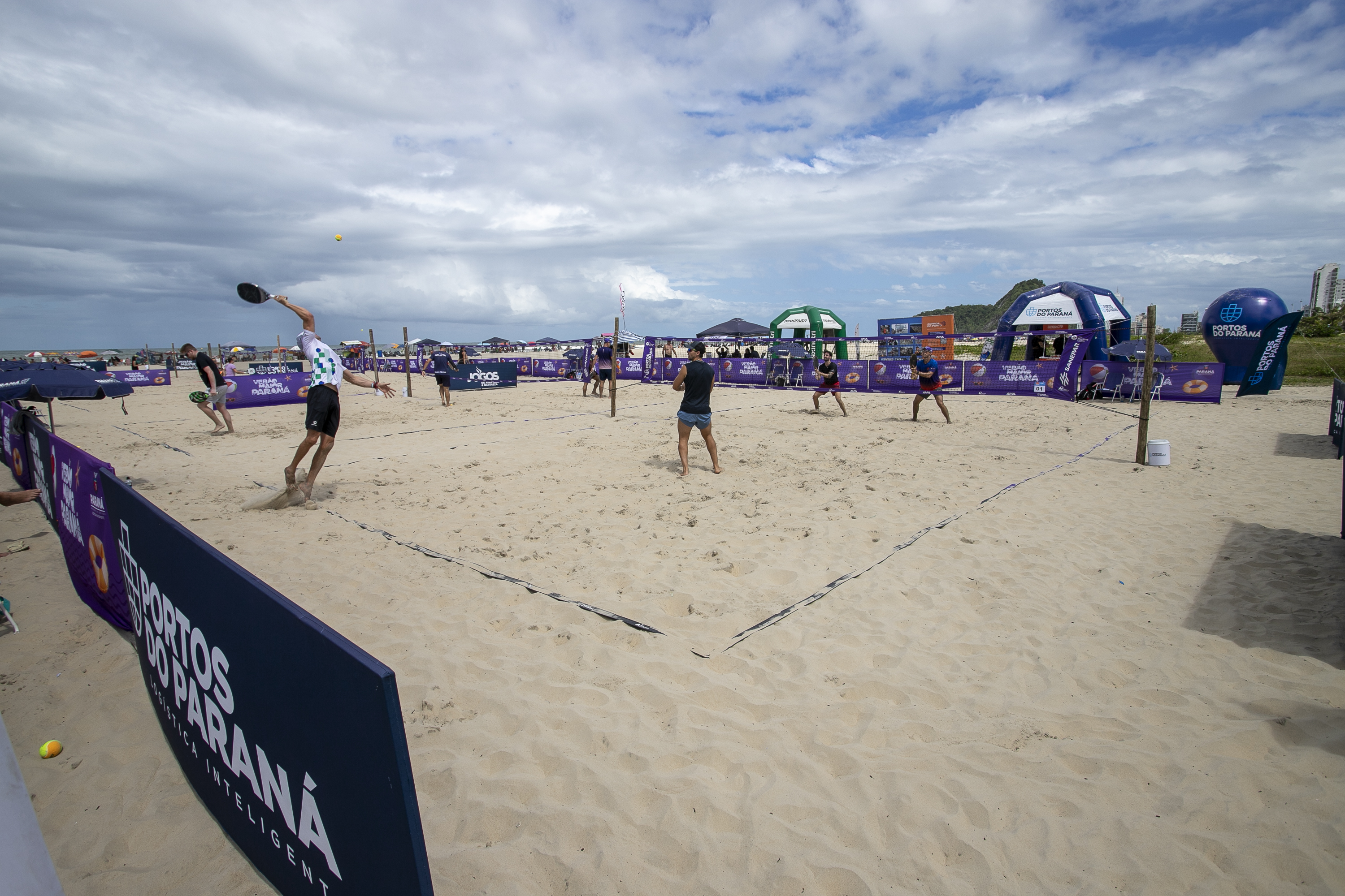 O torneio de beach tennis FPT Beach Series 1500 – Portos do Paraná segue neste domingo (01) nas 16 quadras montadas em Caiobá - Matinhos, no Litoral do Estado. No total, 206 atletas se inscreveram na competição. Neste sábado (28), segundo dia do torneio, portuários e atletas disputaram nas categorias de nível B, C, D e E, nas modalidades masculina e feminina. A competição acontece na Arena Portos do Paraná, que conta com praça de alimentação e espaço recovery.