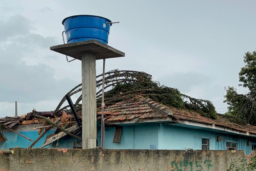 O órgão estadual acompanha os estragos causados pelo tornado no município da Região Metropolitana (RMC) desde que a ocorrência aconteceu. No domingo (11), a Defesa Civil do Estado já havia enviado 2,6 mil telhas para ajudar os atingidos pelo tornado. Com a nova remessa desta segunda-feira, a ajuda estadual totaliza 4,6 mil telhas.