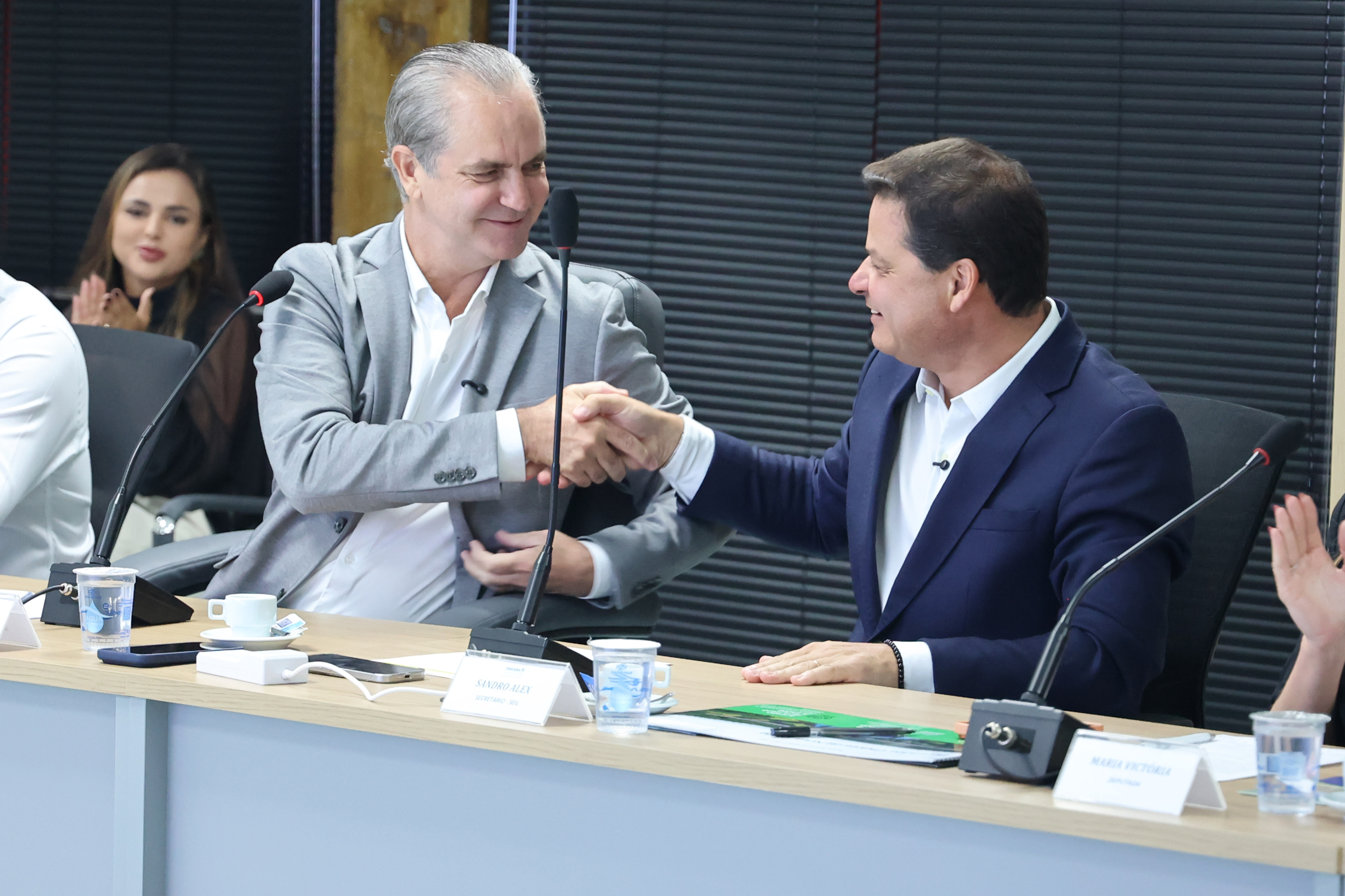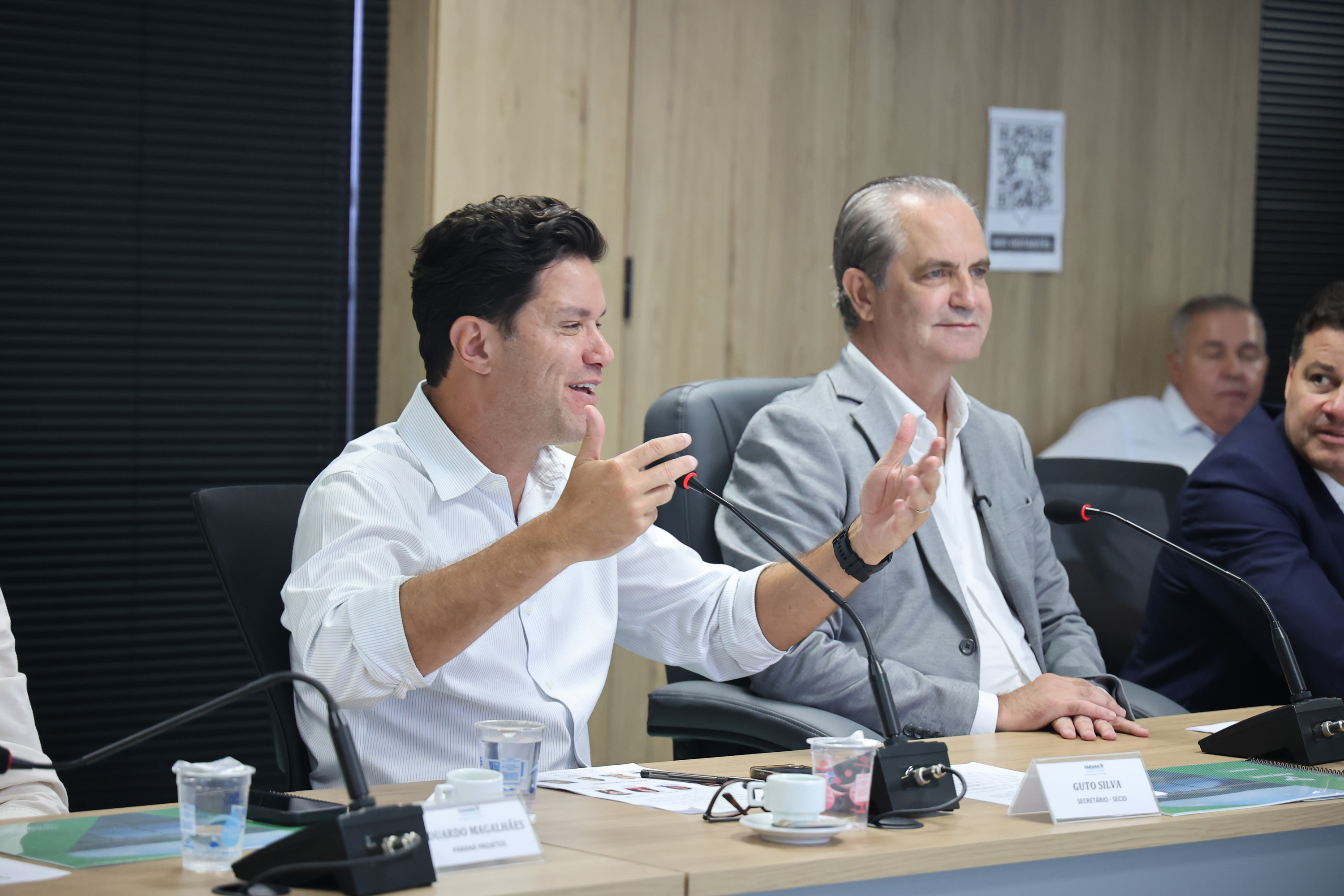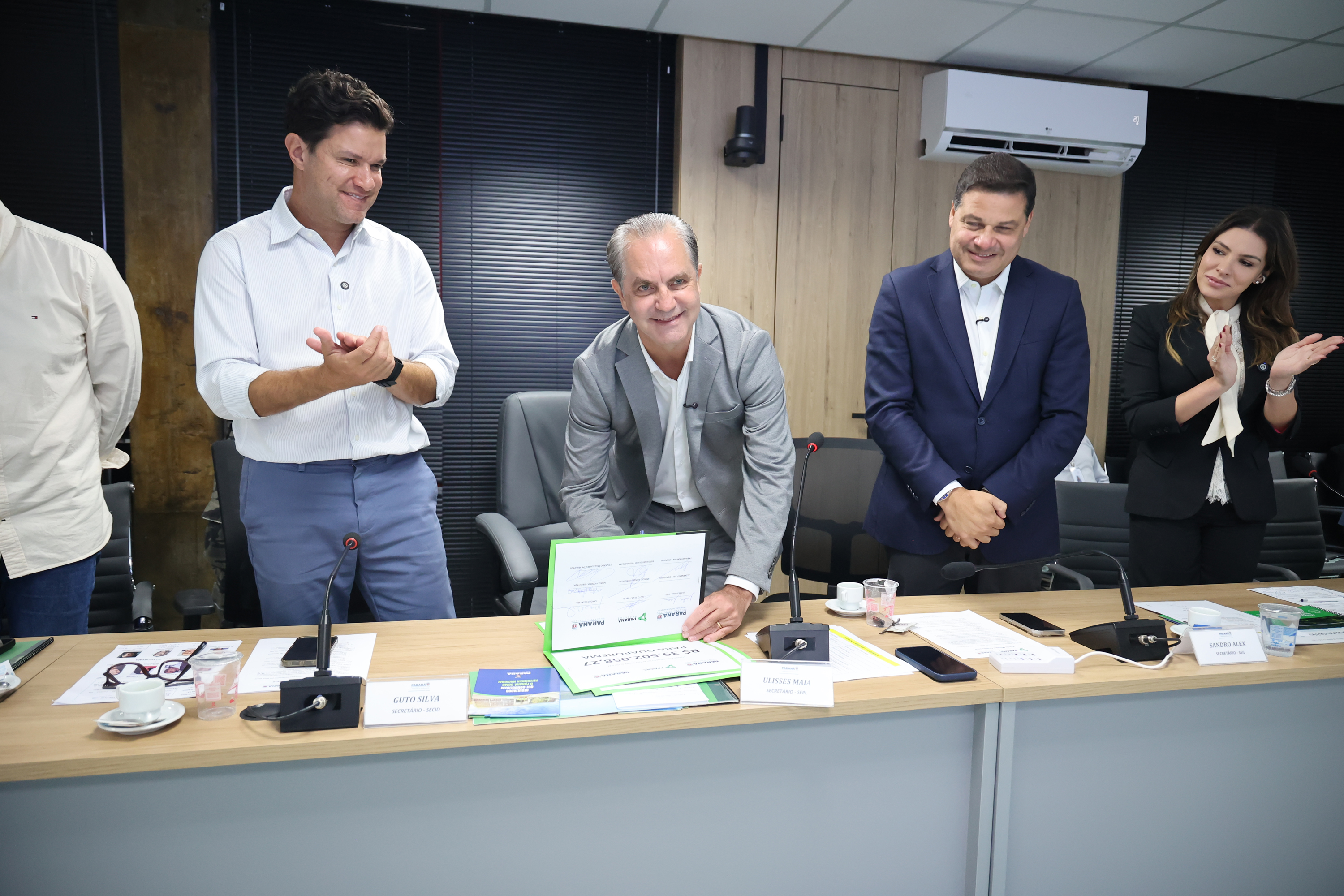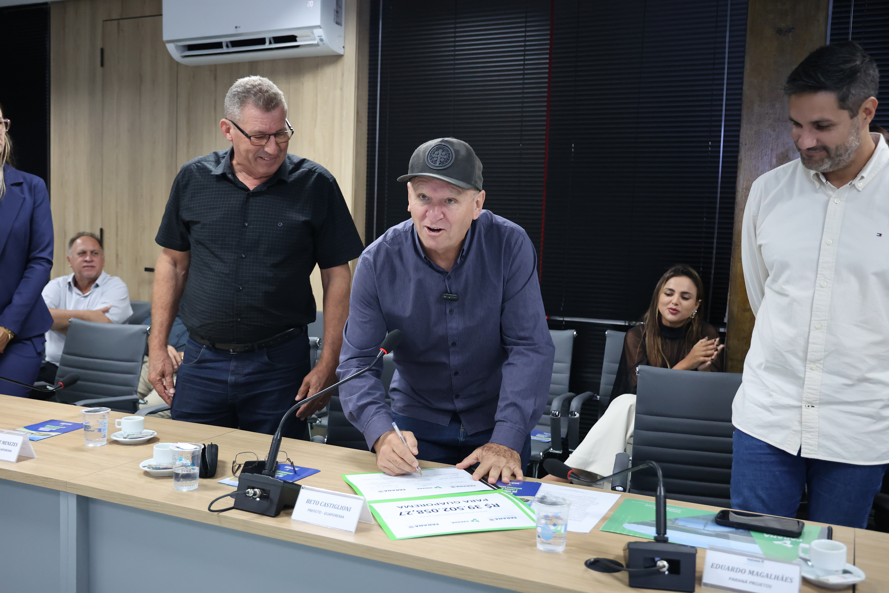 PRESENÇAS – Também estiveram presentes na reunião o superintendente do Paraná Projetos, Eduardo Magalhães; o diretor de Planejamento e Projetos do Paraná Projetos, Célio Watter; a deputada estadual Maria Victória, os prefeitos das duas cidades, Beto Castiglioni e Fabiano Travain, os vice-prefeitos Braulio e Ivan Beraldo, e todos os vereadores das duas câmaras municipais.