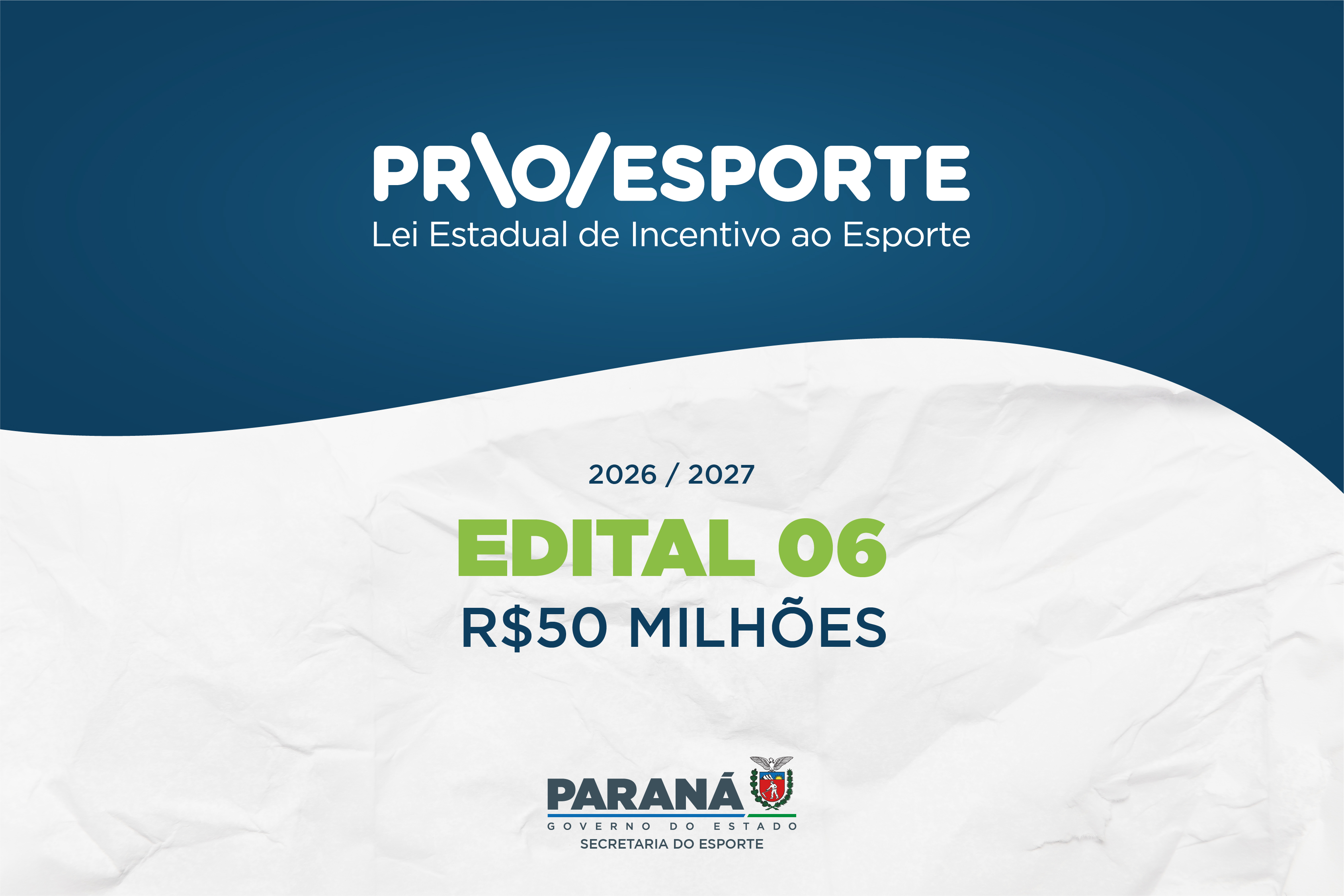 O Governo do Estado divulgou a , que destinará R$ 50 milhões para o fomento ao esporte paranaense em 2026 e 2027. O edital teve 1.845 projetos inscritos, quase o dobro do volume registrado em 2023, quando o Edital nº 05 contabilizou 945 inscrições.