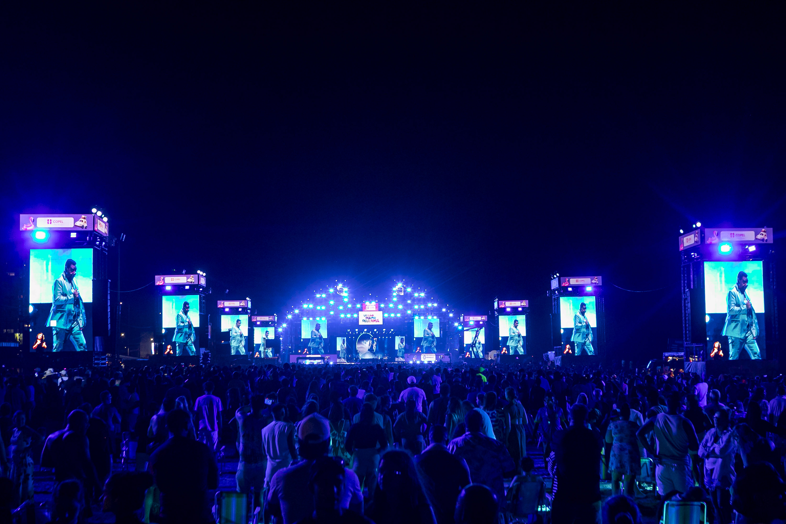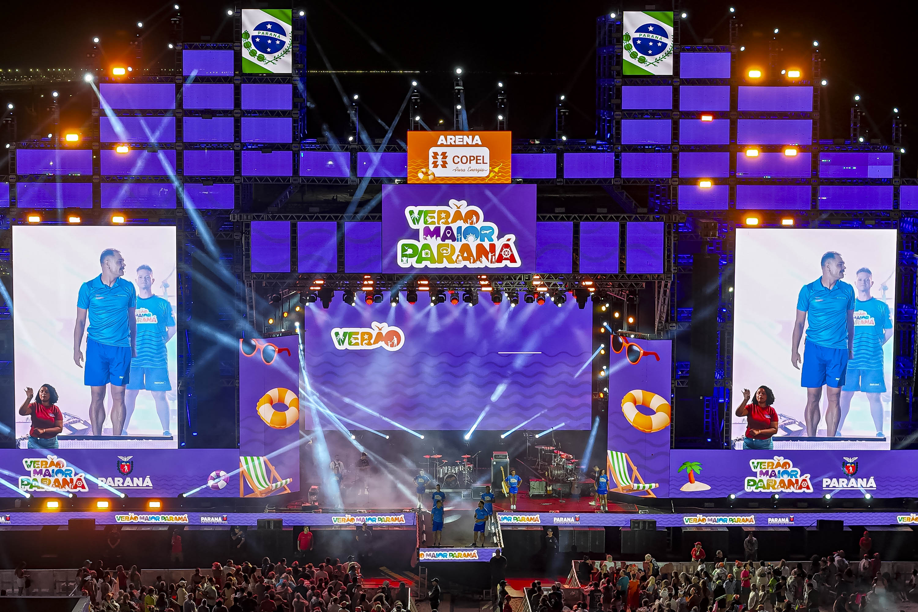 O público chegou bem aquecido para o show. Antes da atração principal, a banda da Polícia Militar do Paraná (PMPR) abriu os trabalhos no palco de Matinhos. “O reconhecimento do público pelo nosso trabalho é algo que nos emociona. Nos preparamos para esse momento, com músicos muito talentosos, e o retorno do lado de lá tem sido espetacular”, disse o comandante da banda, capitão Jefferson Cardoso.