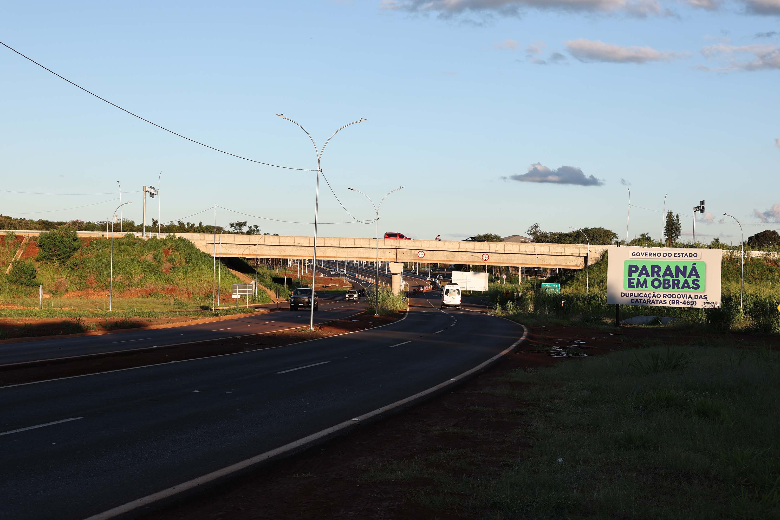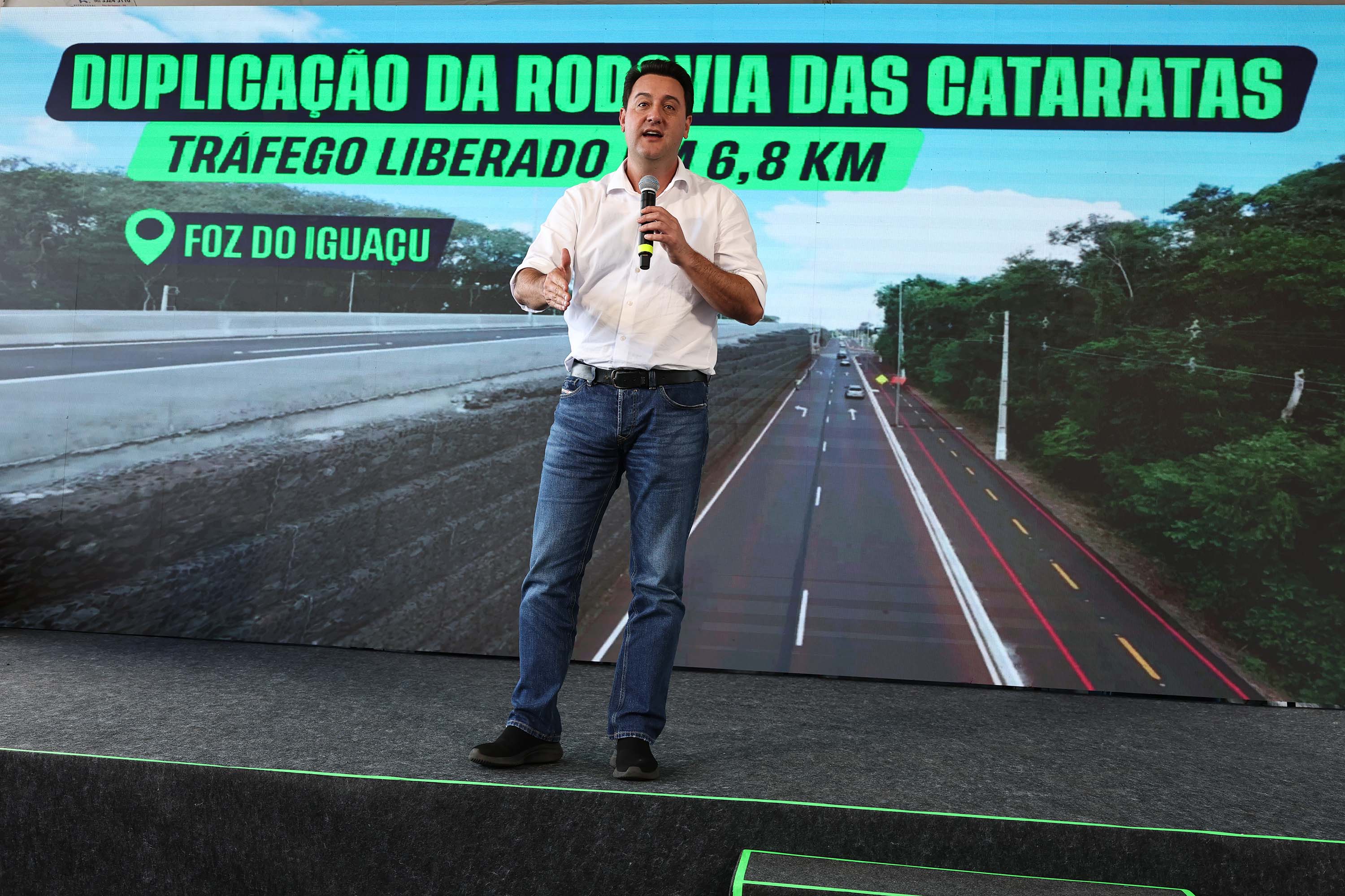 O governador Carlos Massa Ratinho Junior entregou nesta quinta-feira (9) a primeira etapa da duplicação da Rodovia das Cataratas (BR-469), em Foz do Iguaçu, no Oeste do Paraná. Com uma extensão de 6,8 quilômetros, o trecho liberado é o mais movimentado e representa um importante avanço na mobilidade urbana, com impacto para atrativos turísticos, como as Cataratas do Iguaçu, e o Aeroporto Internacional de Foz.