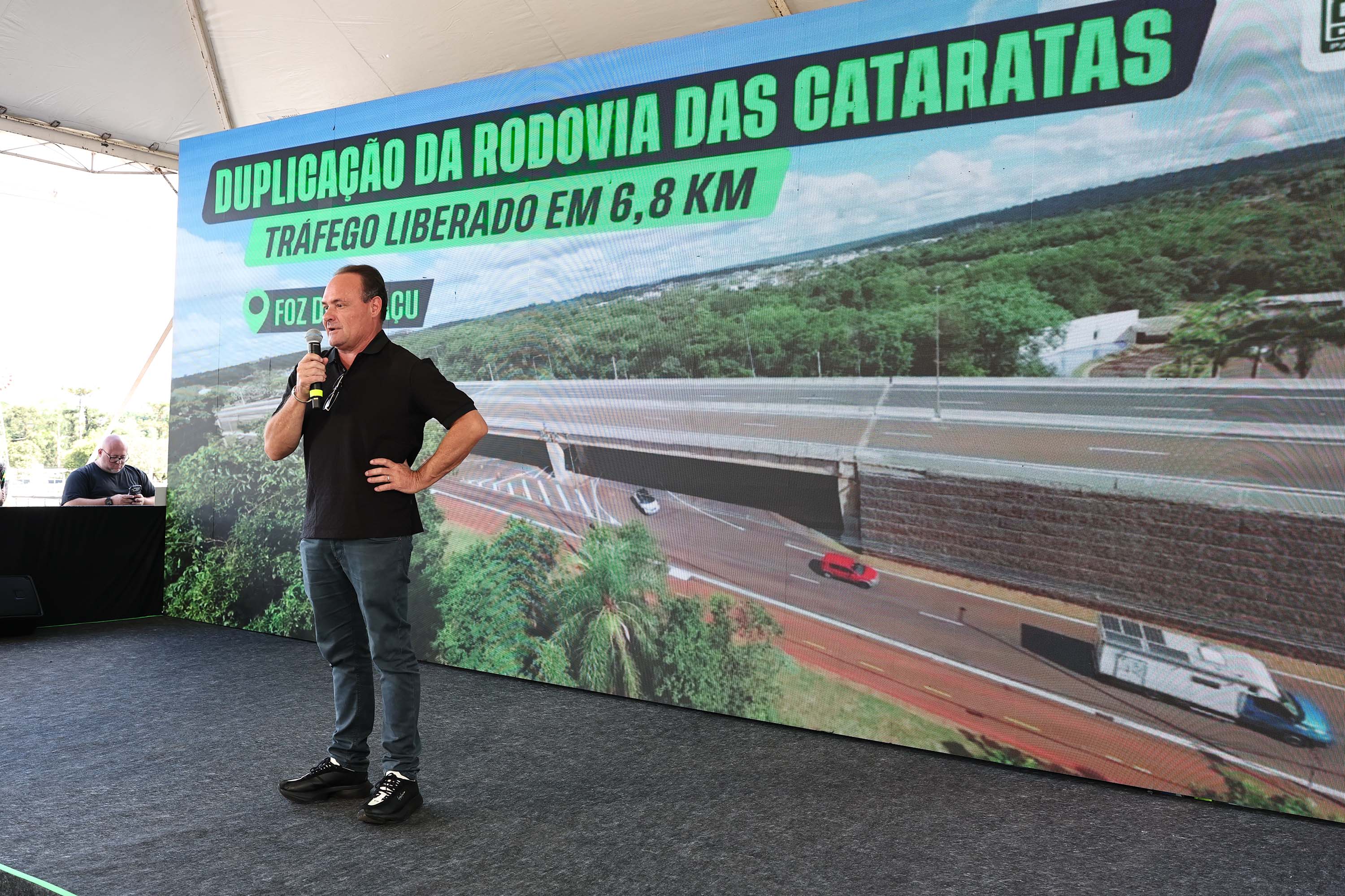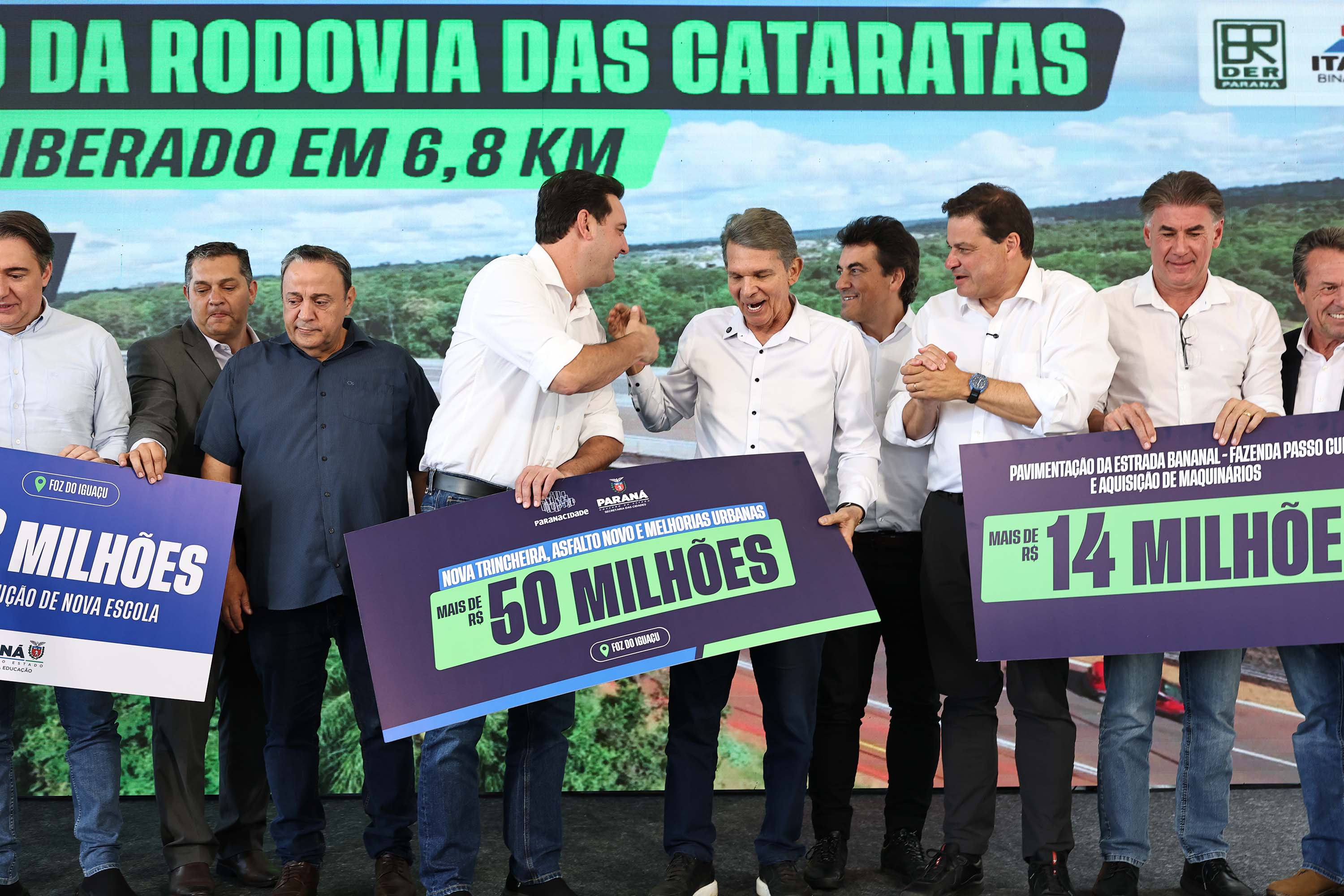 “Fizemos a Ponte da Integração, a Perimetral Leste, o viaduto do Hotel Recanto, a ampliação da pista do aeroporto, todos entregues, e agora a Rodovia das Cataratas entrando em reta final. Todas essas grandes obras que eram um desejo e uma necessidade da cidade há décadas nós entregamos”, acrescentou. “A ideia é que, em mais seis meses, a gente consiga ter a entrega de toda a rodovia.”
