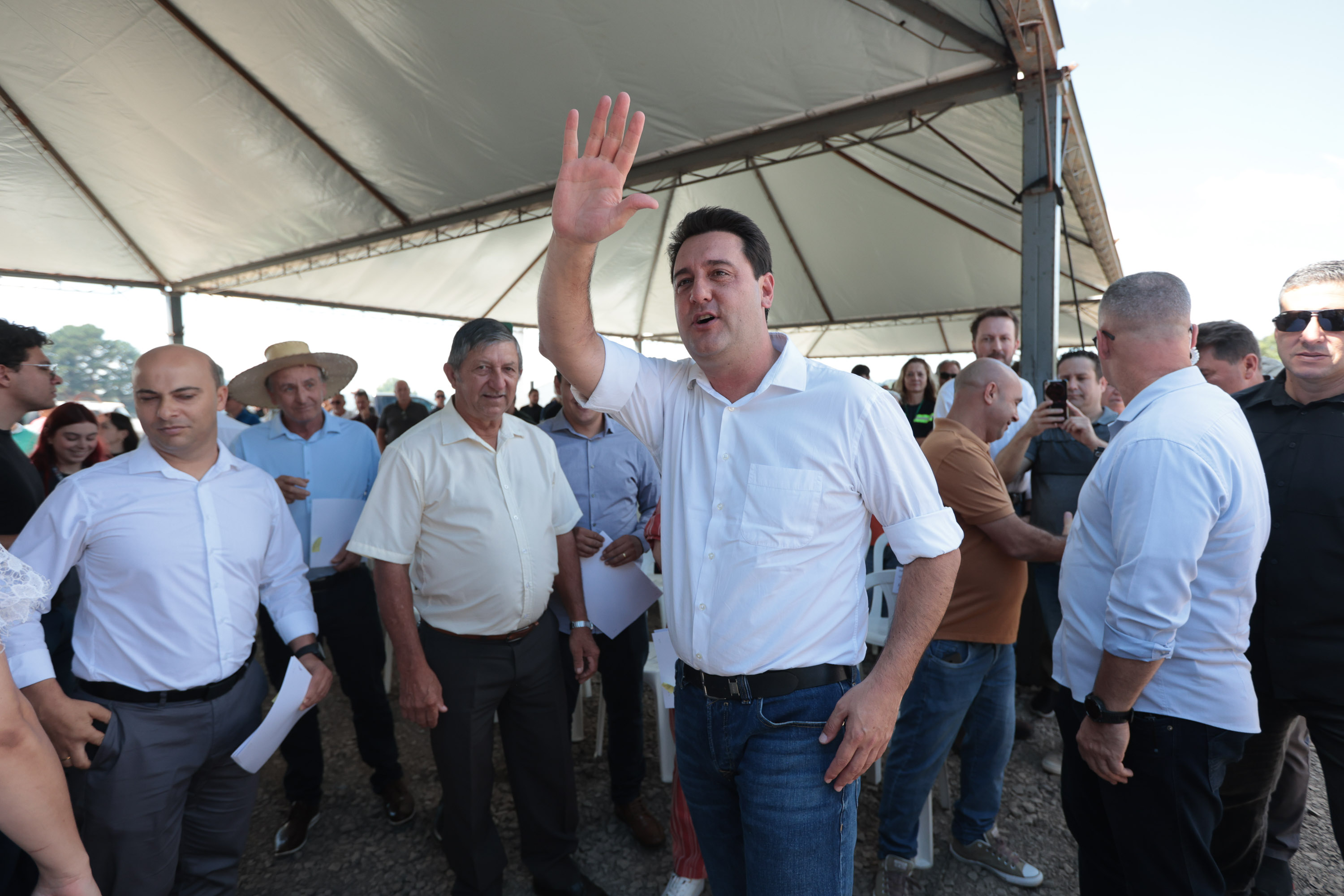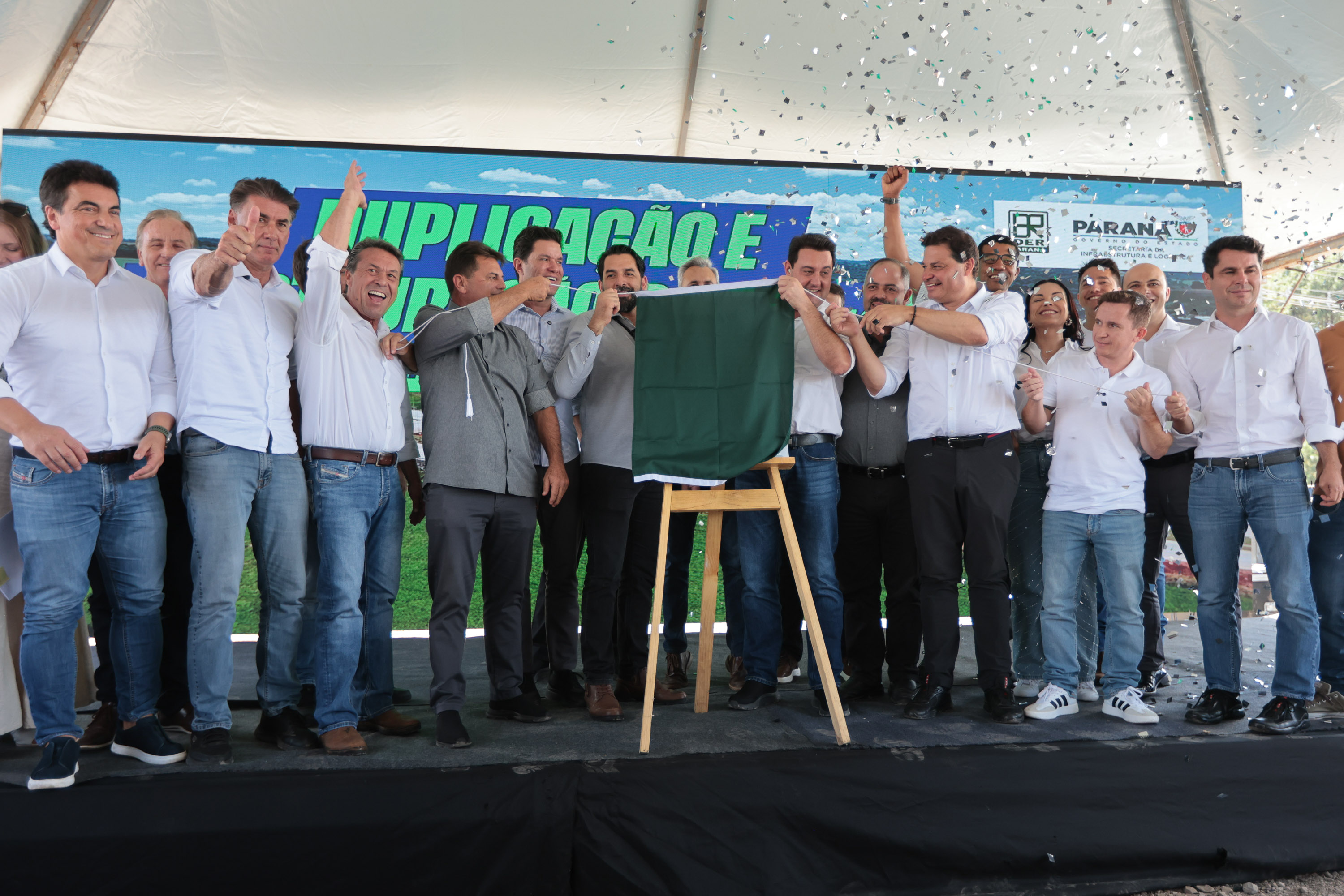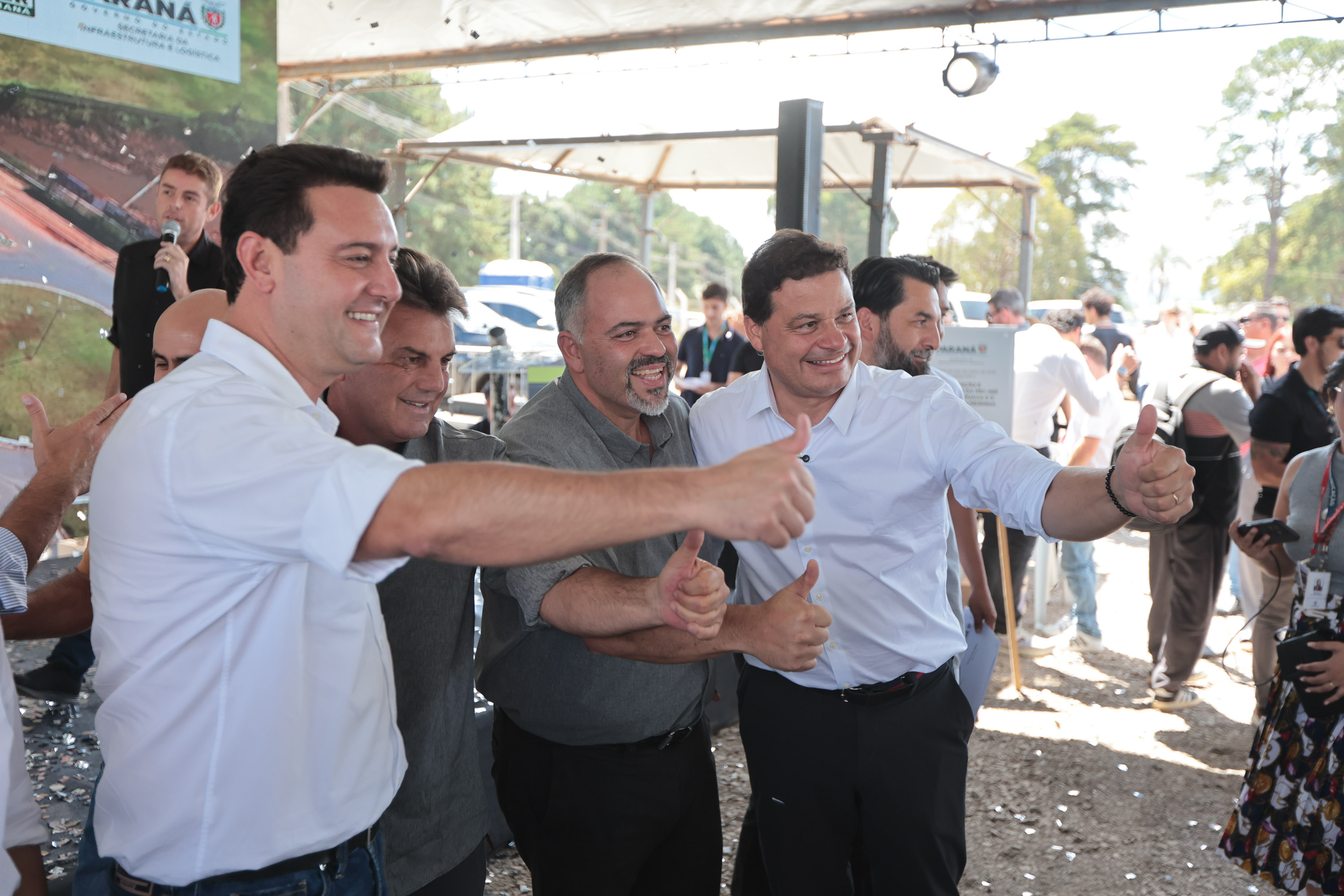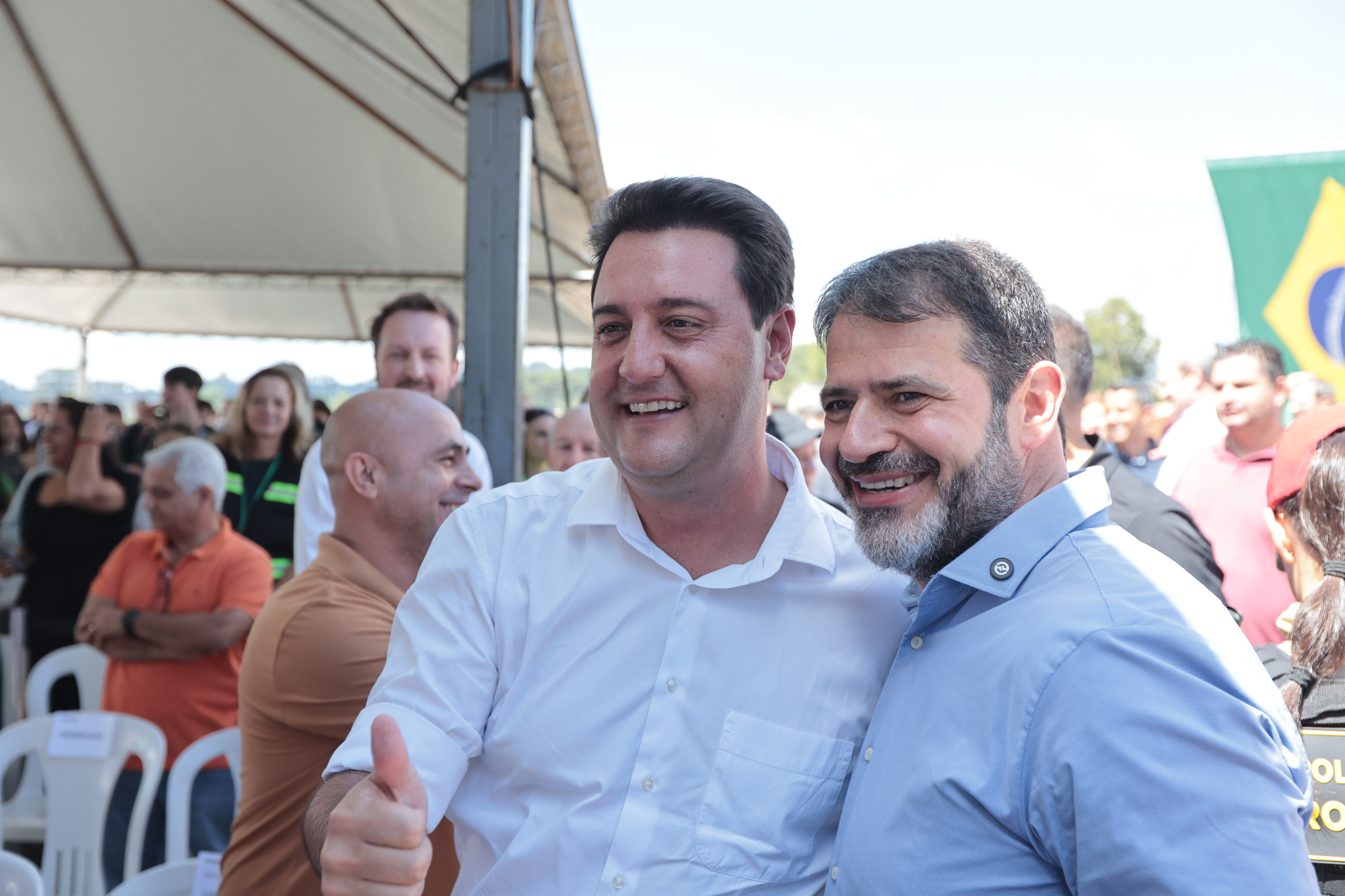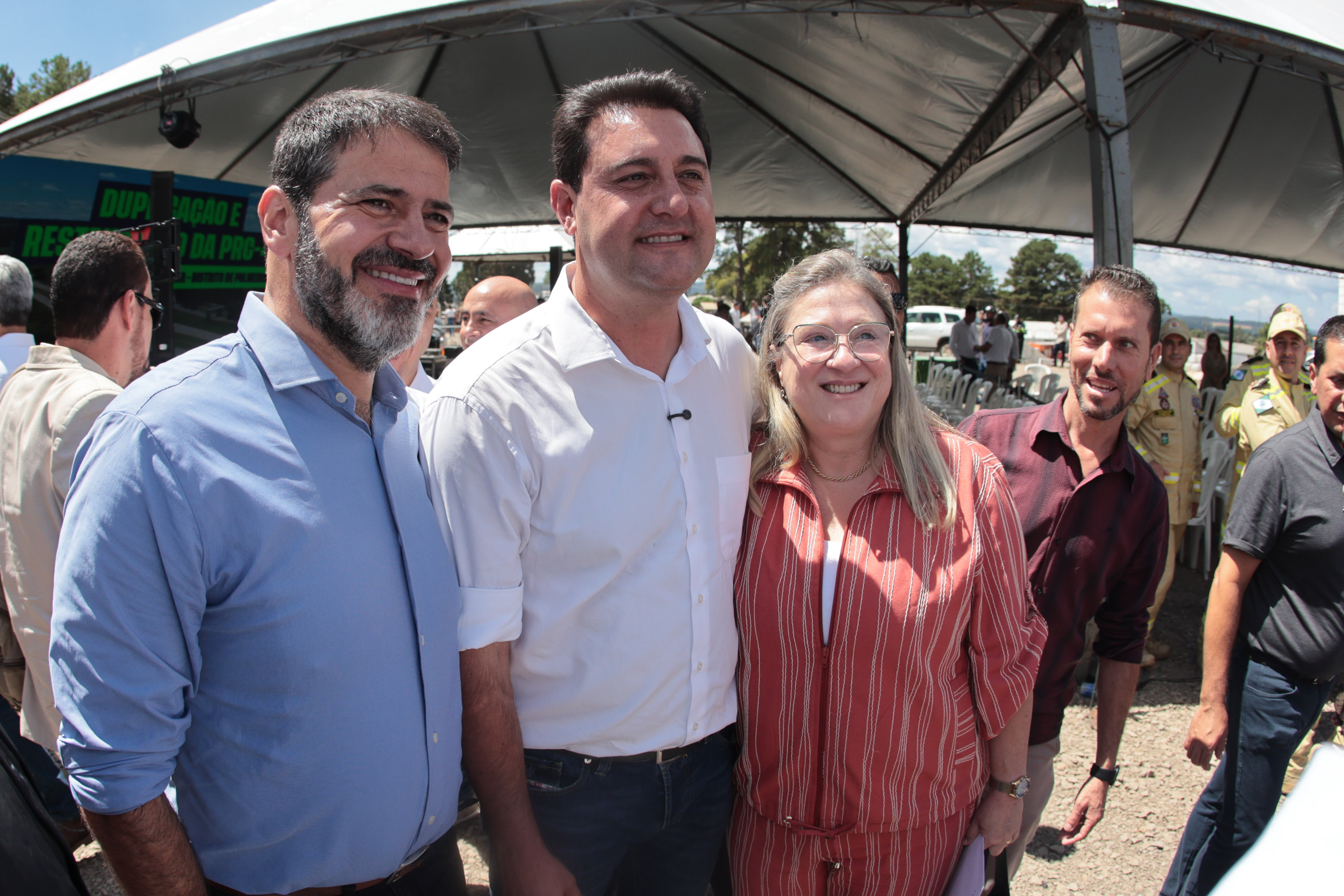 PRESENÇAS – Também participaram do evento os secretários de Estado Guto Silva (Cidades), Marcio Nunes (Agricultura e Abastecimento), Aldo Bona (Ciência, Tecnologia e Ensino Superior) e Leonaldo Paranhos (Turismo); o chefe da casa militar, tenente-coronel Tordoro; o diretor-presidente do DER, Fernando Furiatti; a vice-prefeita Rosangela Virmond; o presidente da Câmara de Vereadores, Pedro Moraes; o presidente da Assembleia Legislativa, Alexandre Curi; o deputado federal Rodrigo Estacho; os deputados estaduais Fabio Oliveira e Artagão Junior; o presidente da Amocentro e prefeito de Manoel Ribas, Jose Carlos Corona; o comandante do Batalhão de Polícia Rodoviária, tenente-coronel Gustavo Daleb; a diretora técnica do DER, Janice Kazmierczak; e o coordenador da Casa Civil de Guarapuava, Andre Rorakowski.