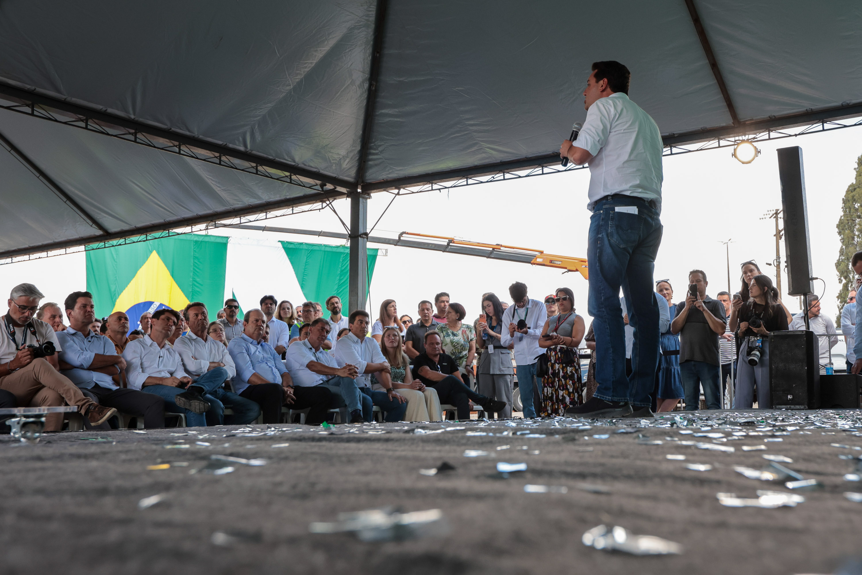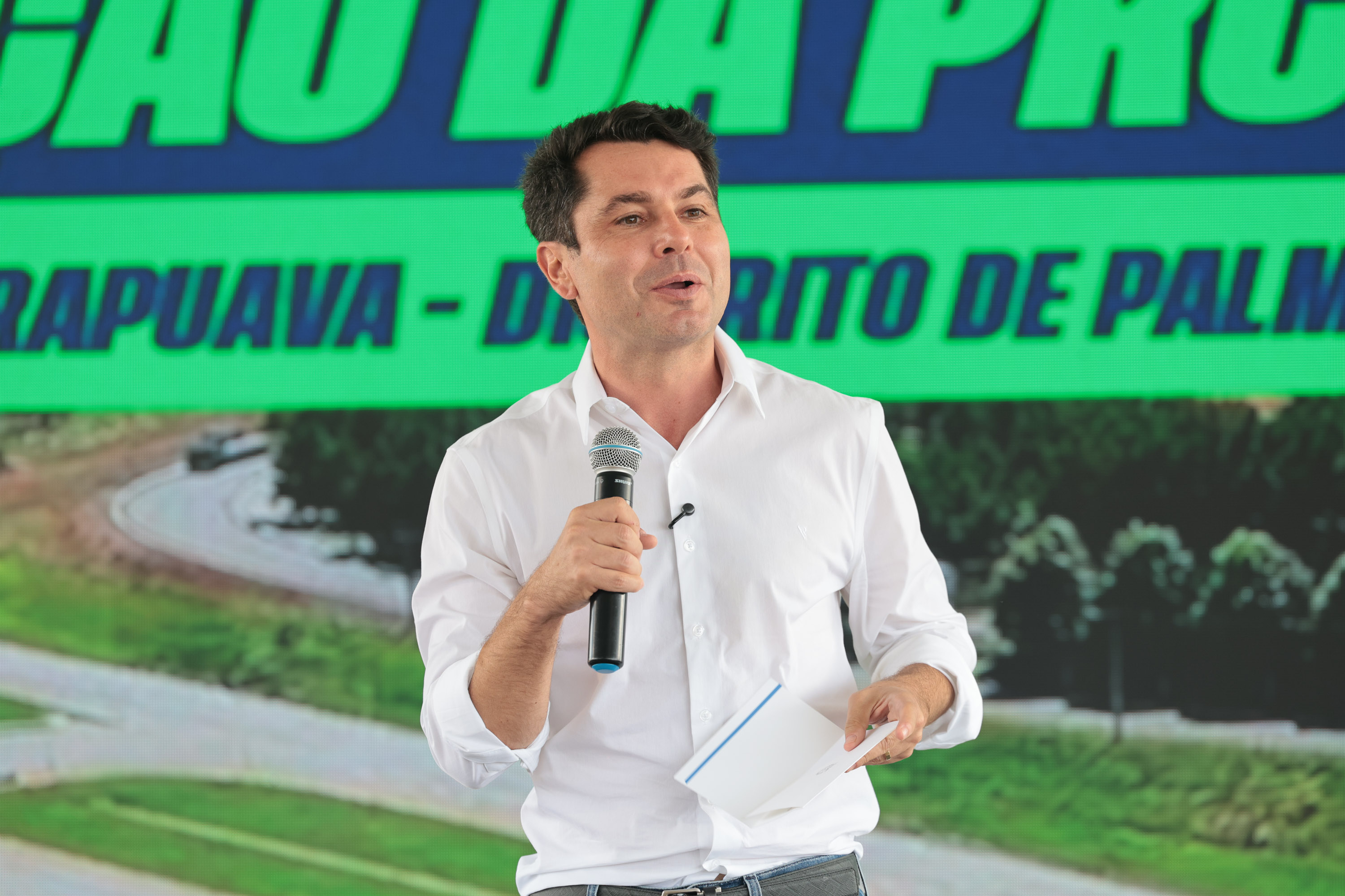 Durante a solenidade, o governador destacou o impacto da obra para o desenvolvimento regional, com ganhos em logística, segurança e qualidade de vida para a população. “Estamos finalizando o primeiro trecho aqui em Palmeirinha e os outros já foram iniciados, passando por Turvo e chegando até Pitanga. Tudo isso está transformando a região”, explicou Ratinho Junior.