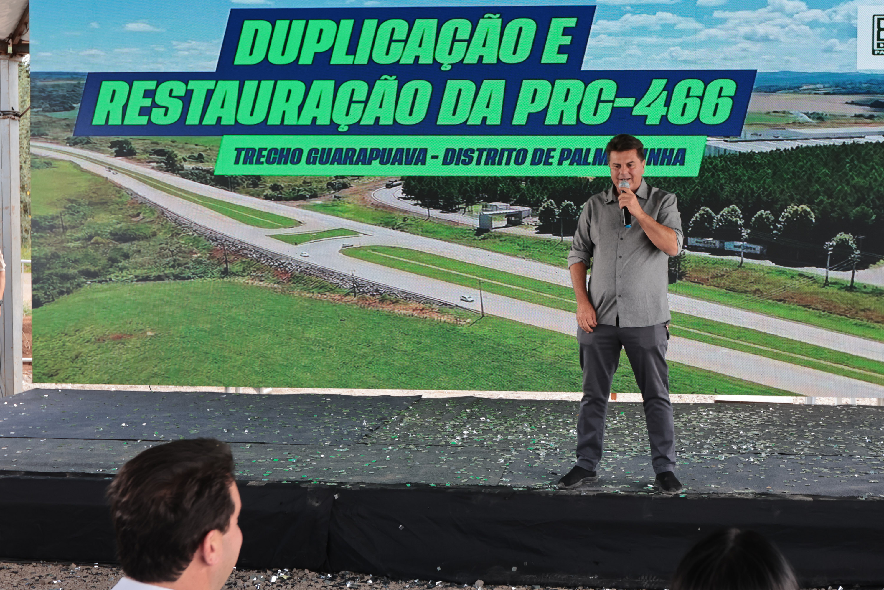 “Temos um grande volume de investimentos de infraestrutura na região de Guarapuava. Estamos entregando o primeiro trecho da PR-466, um grande investimento de R$ 140 milhões”, ressaltou o secretário estadual de Infraestrutura e Logística, Sandro Alex. “Já estamos com obras avançadas até Turvo e também até Pitanga e vamos liberar, nos próximos dias, mais 4 ou 5 quilômetros do perímetro urbano de Pitanga”.