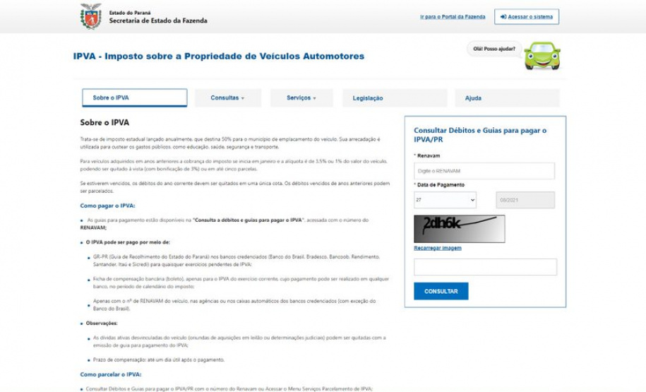 ATENÇÃO – Como o sistema está em processo de migração interna, podem ocorrer picos de instabilidade. Caso aconteçam, ou se houver dúvidas, o contribuinte pode entrar em contato com o Serviço de Atendimento ao Cidadão (SAC), nos telefones (41) 3200-5009 (Curitiba e Região) e 0800-041-1528 (demais localidades), no horário das 7h às 19h.