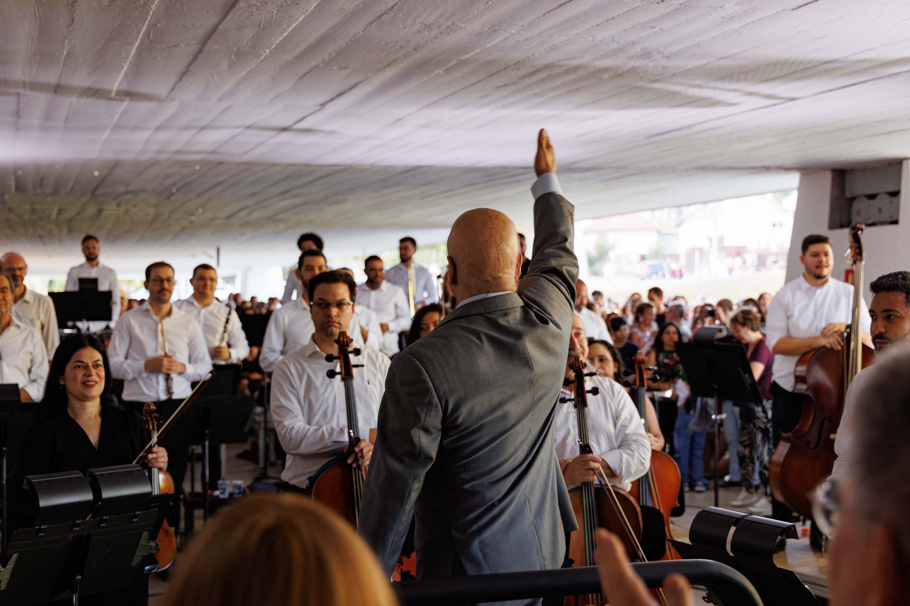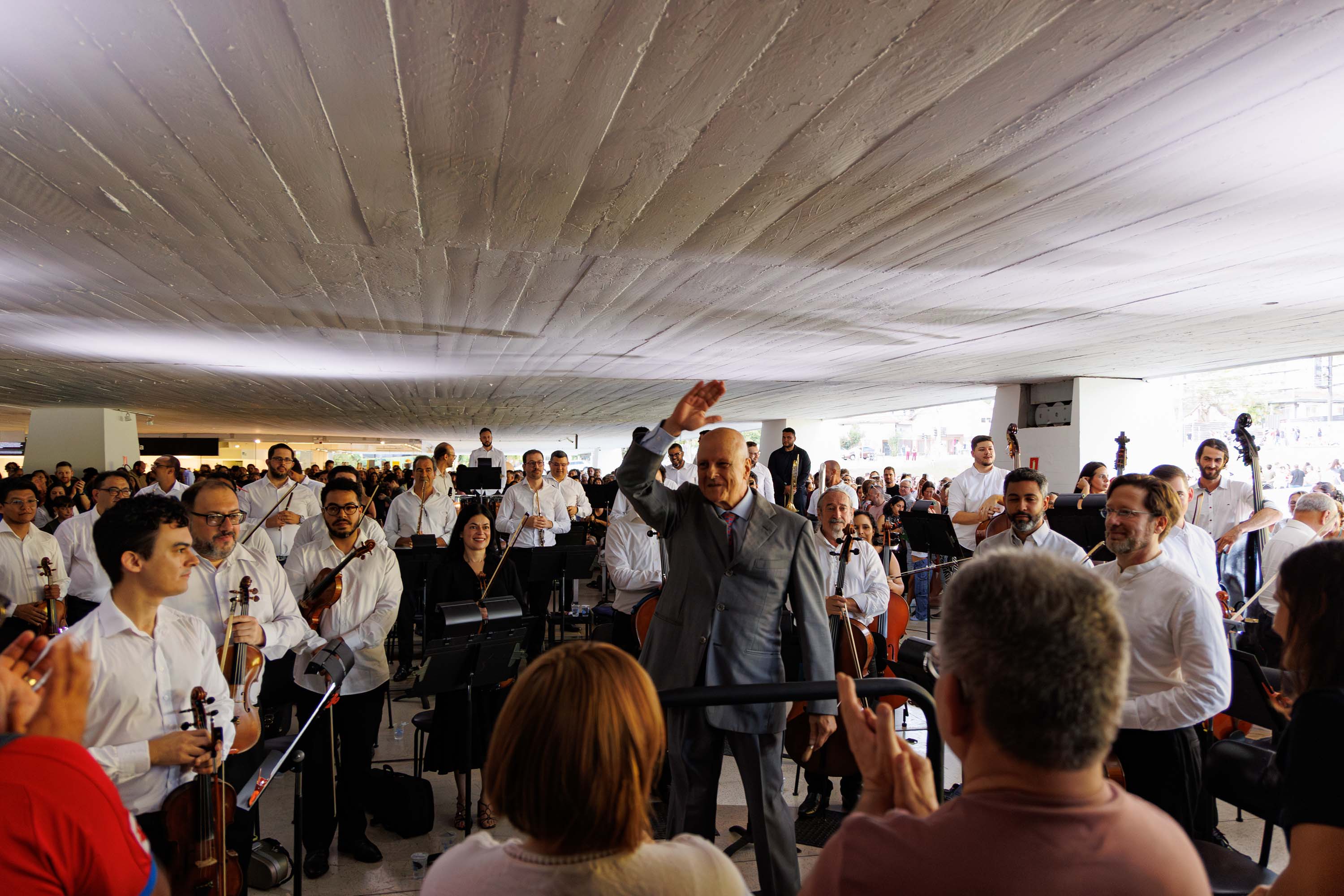 “Nós estamos no segundo ano, tocando o essencial de Mozart e, neste sábado, também trazendo Beethoven para um público que lotou o MON. Estou muito feliz com esse público tão carinhoso e com esse concerto que foi maravilhoso”, disse o maestro titular e diretor musical da Orquestra Sinfônica do Paraná, Roberto Tibiriça. Ele conduziu o concerto trazendo duas obras icônicas do repertório clássico: a abertura da ópera A Flauta Mágica, de Wolfgang Amadeus Mozart, e a célebre Sinfonia nº 5, de Ludwig van Beethoven.
