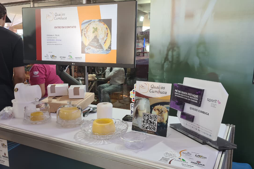 A Universidade Tecnológica Federal do Paraná (UTFPR) expõe dois projetos. O primeiro, do câmpus de Cornélio Procópio, na região Norte, é um sistema que utiliza inteligência artificial para identificar o fungo da ferrugem da soja, com o objetivo de tornar o monitoramento mais rápido e preciso. A outra tecnologia vem do câmpus de Dois Vizinhos, no Sudoeste, e consiste em um molde de plástico, em dois tamanhos, para produzir queijos no formato de cumbuca para servir massas, caldos e risotos.