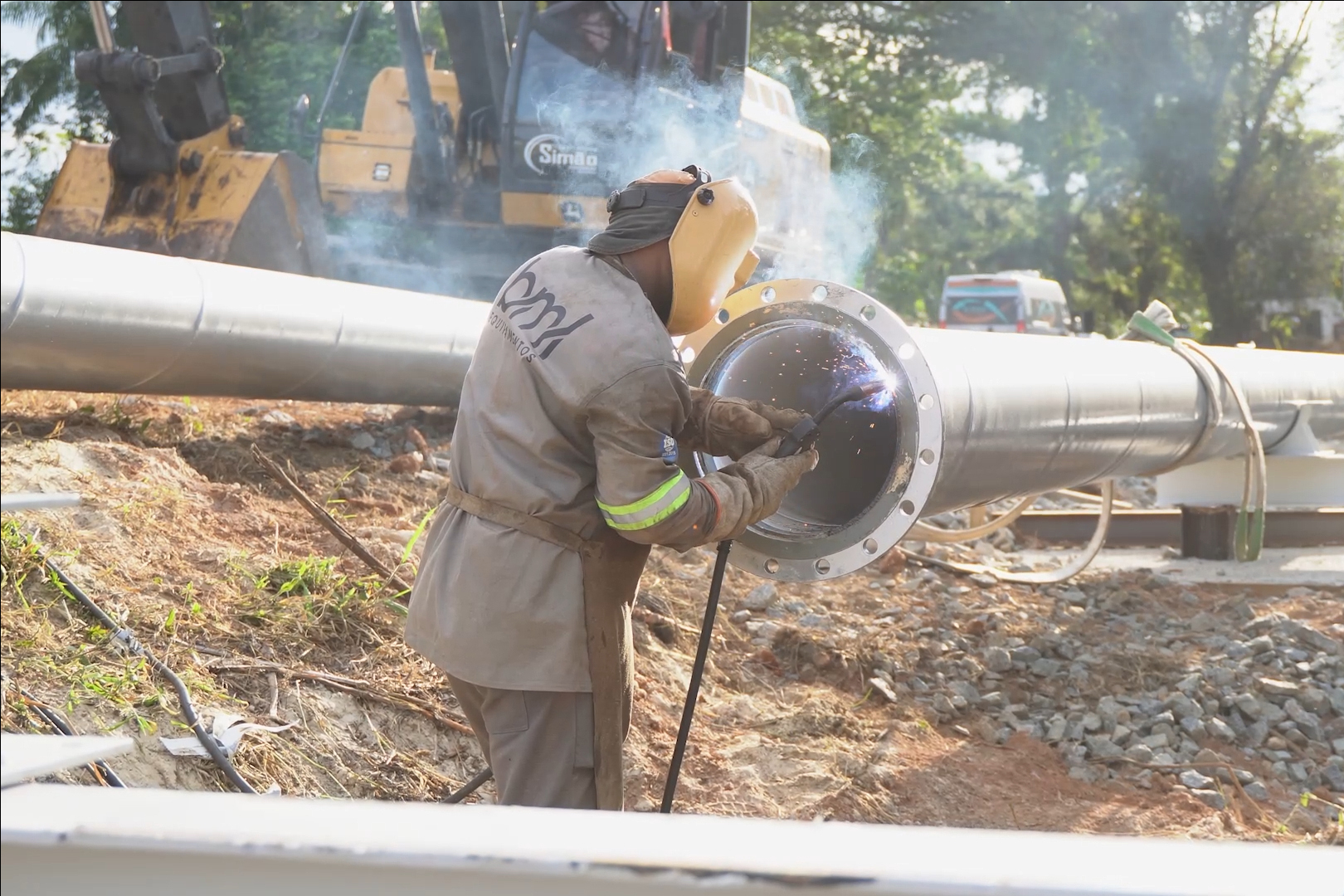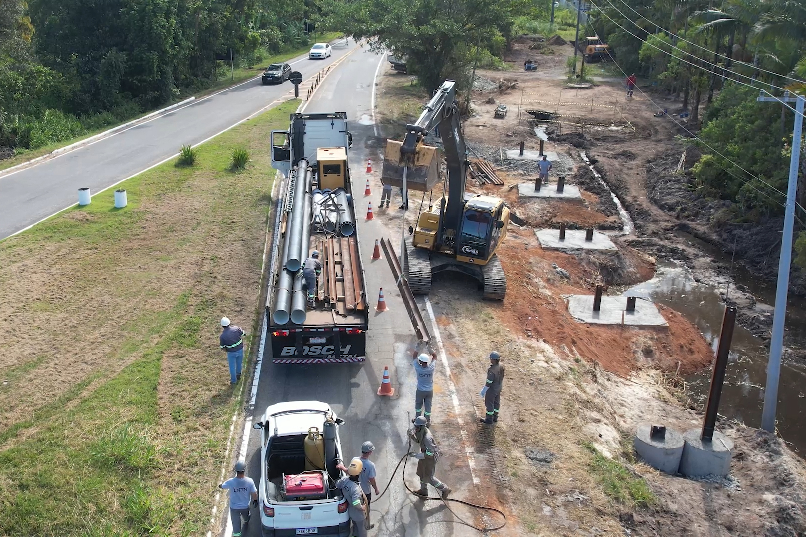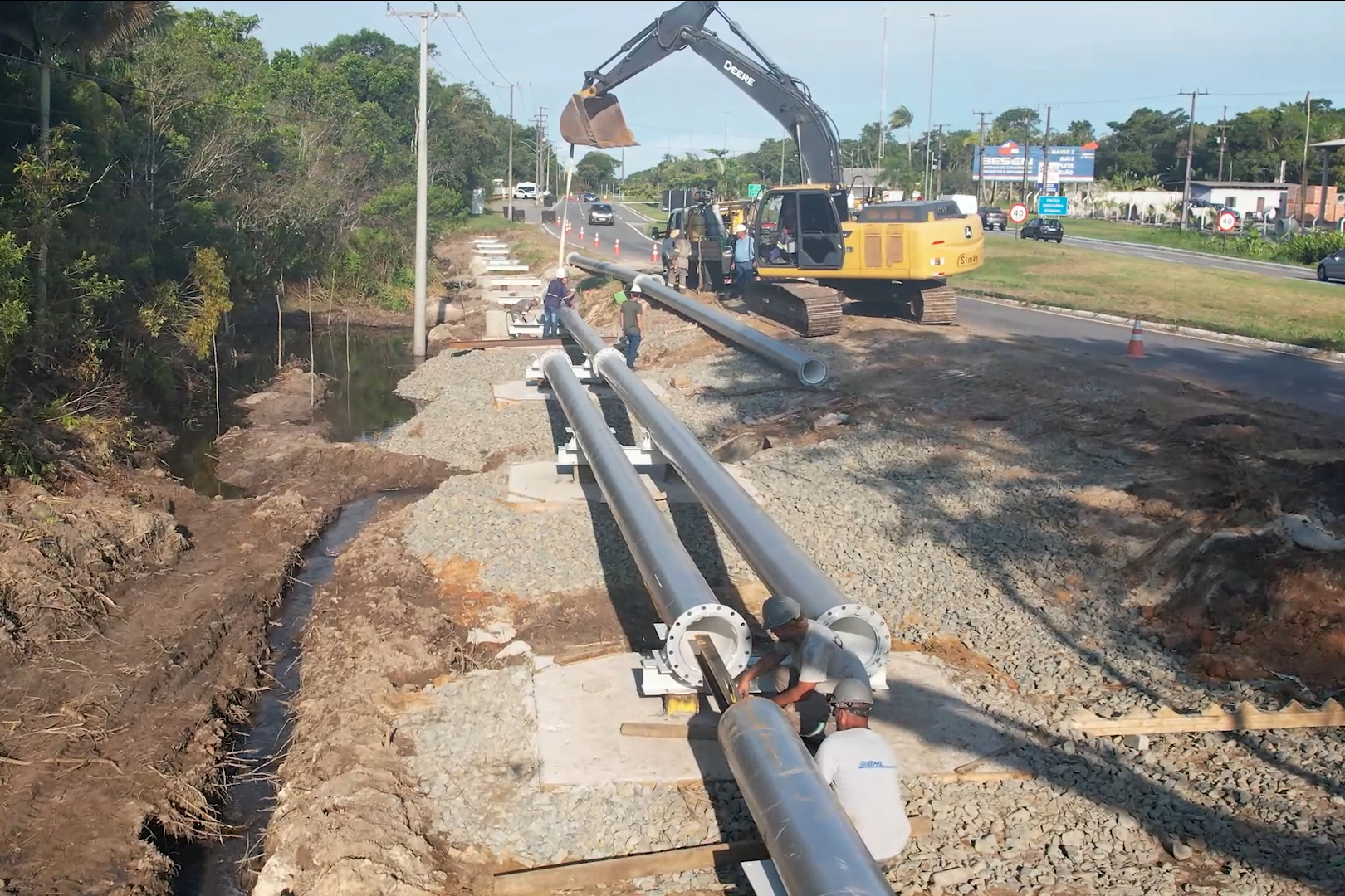 ETAPAS – A primeira parte da intervenção foi a drenagem do solo, seguida da cravação de perfis para a fundação da obra e construção dos pórticos. Na última quarta-feira (28), chegaram os novos tubos, feitos em aço com 12 metros de extensão cada. A troca está sendo feita em dois momentos para assegurar a manutenção do abastecimento.