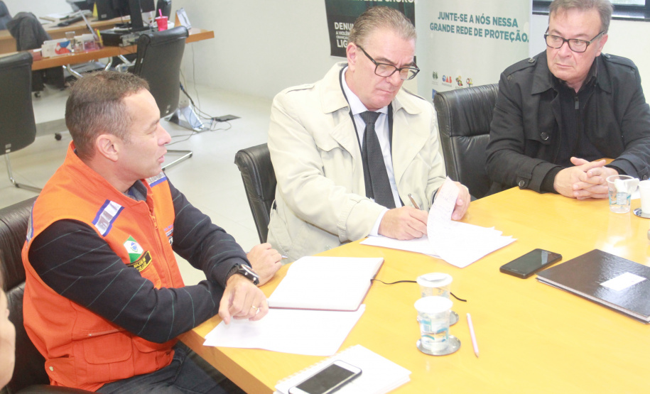 “Por isso, é muito importante que os municípios atentem para essa documentação, pois são critérios objetivos estabelecidos por legislação nacional. Isso é fundamental para que possamos ter condições legais de auxiliá-los”, explicou o coordenador-executivo da Defesa Civil Estadual, major Antonio Hiller, na reunião com o secretário da Justiça em exercício, Adayr Cabral.