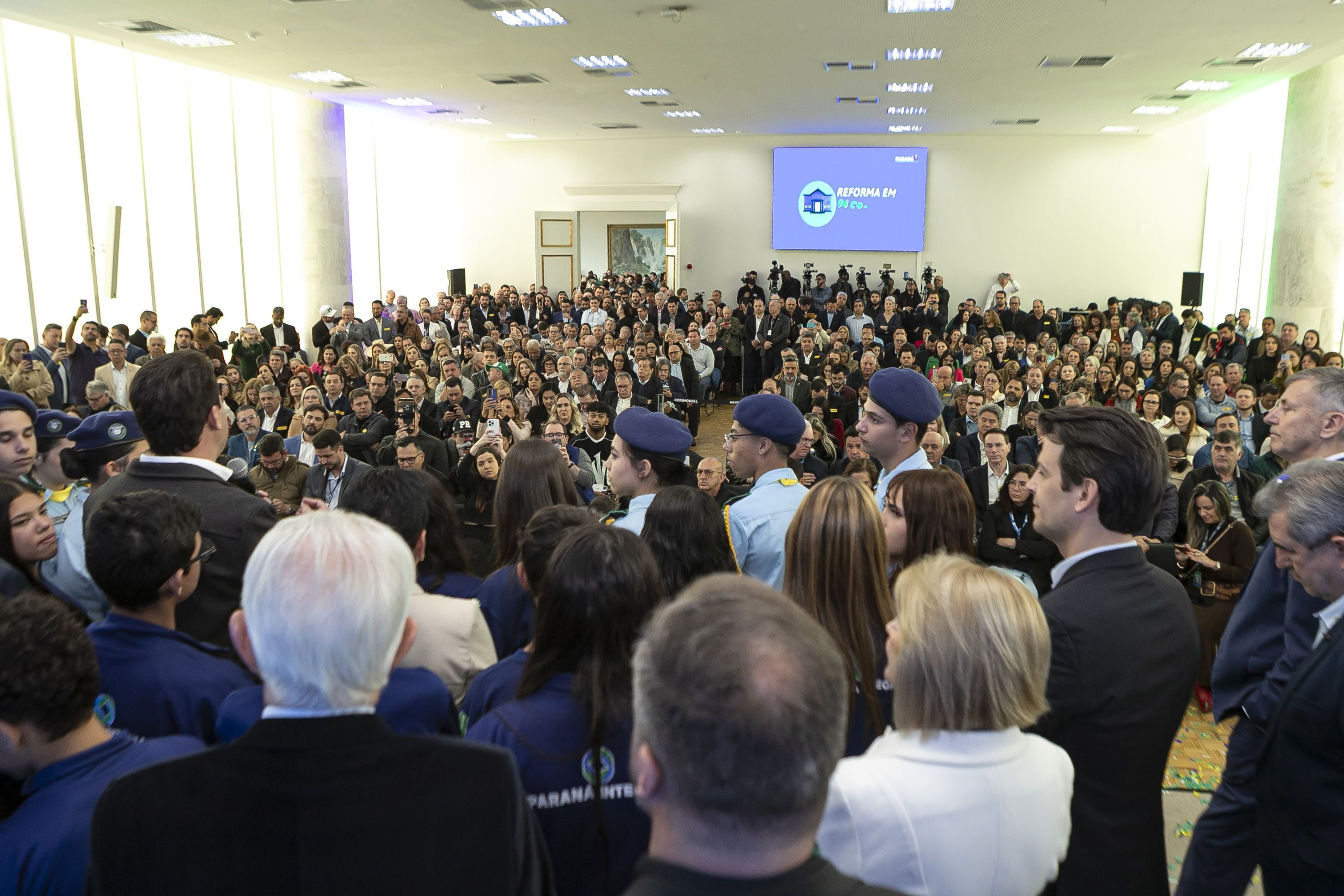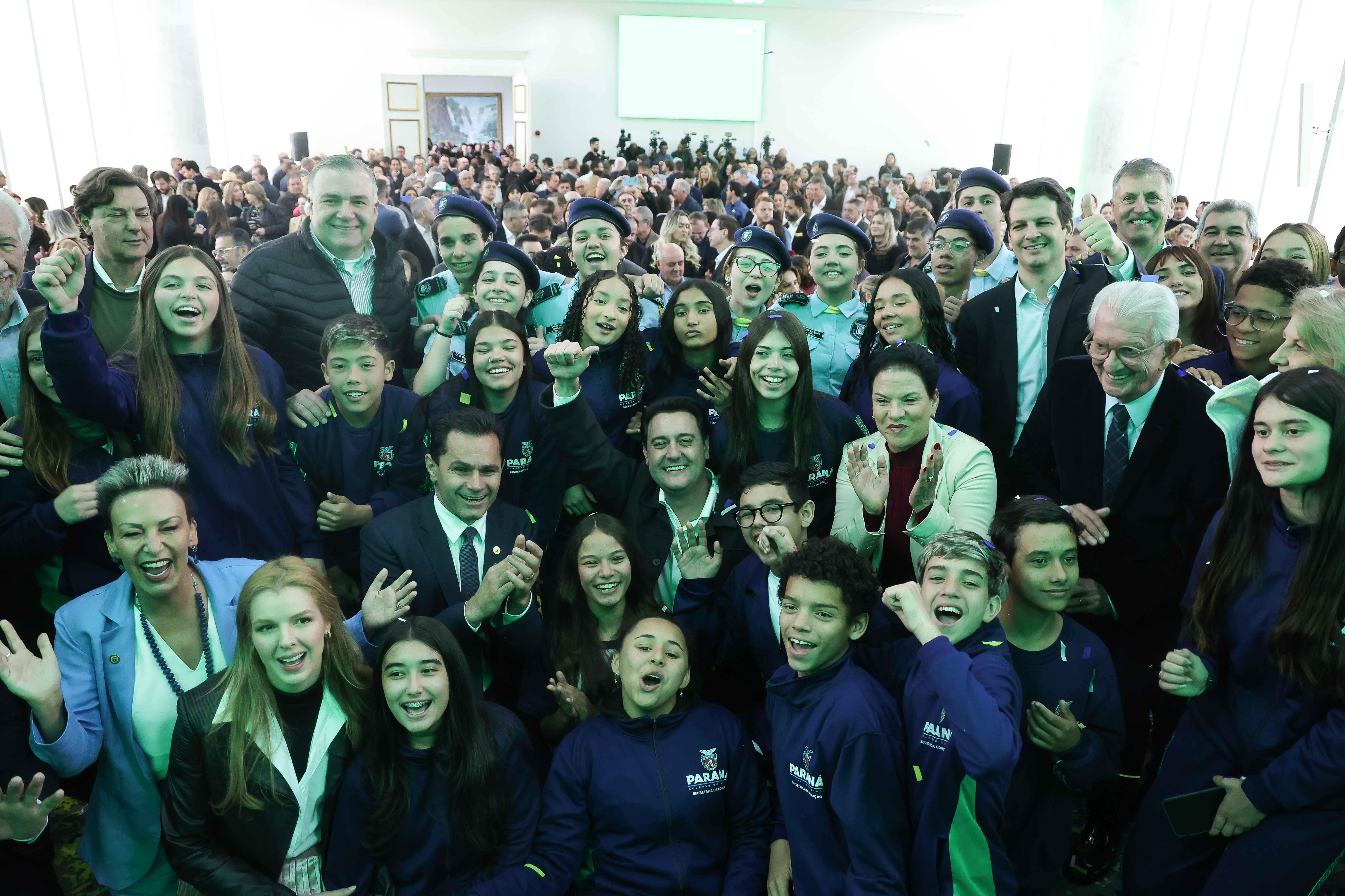 PRESENÇAS – Também participaram do evento o vice-governador Darci Piana; o chefe da Casa Civil, João Carlos Ortega; os secretários estaduais da Administração e Previdência, Luizão Goulart; Trabalho, Qualificação e Renda, Do Carmo; a presidente do Fundepar, Eliane Carmona; o presidente da Assembleia Legislativa do Paraná (Alep), Alexandre Curi; o líder do Governo na Alep, deputado estadual Hussein Bakri; os deputados estaduais Cloara Pinheiro, Ademar Traiano, Flávia Francischini, Gugu Bueno, Jairo Tamura, Maria Victoria, Anibelli Neto, Nelson Justus, Moacyr Fadel, Marcio Pacheco, Alisson Wandscheer, Márcia Huçulak, Marli Paulino, Delegado Jacovós, Pedro Paulo Bazana, Evandro Araújo, Doutor Leônidas, Gilberto Ribeiro, Alexandre Amaro, Luiz Fernando Guerra, Ney Leprevost e Adão Litro; a deputada federal Luísa Canziani; prefeitos, vice-prefeitos, secretários municipais e vereadores de dezenas de municípios.