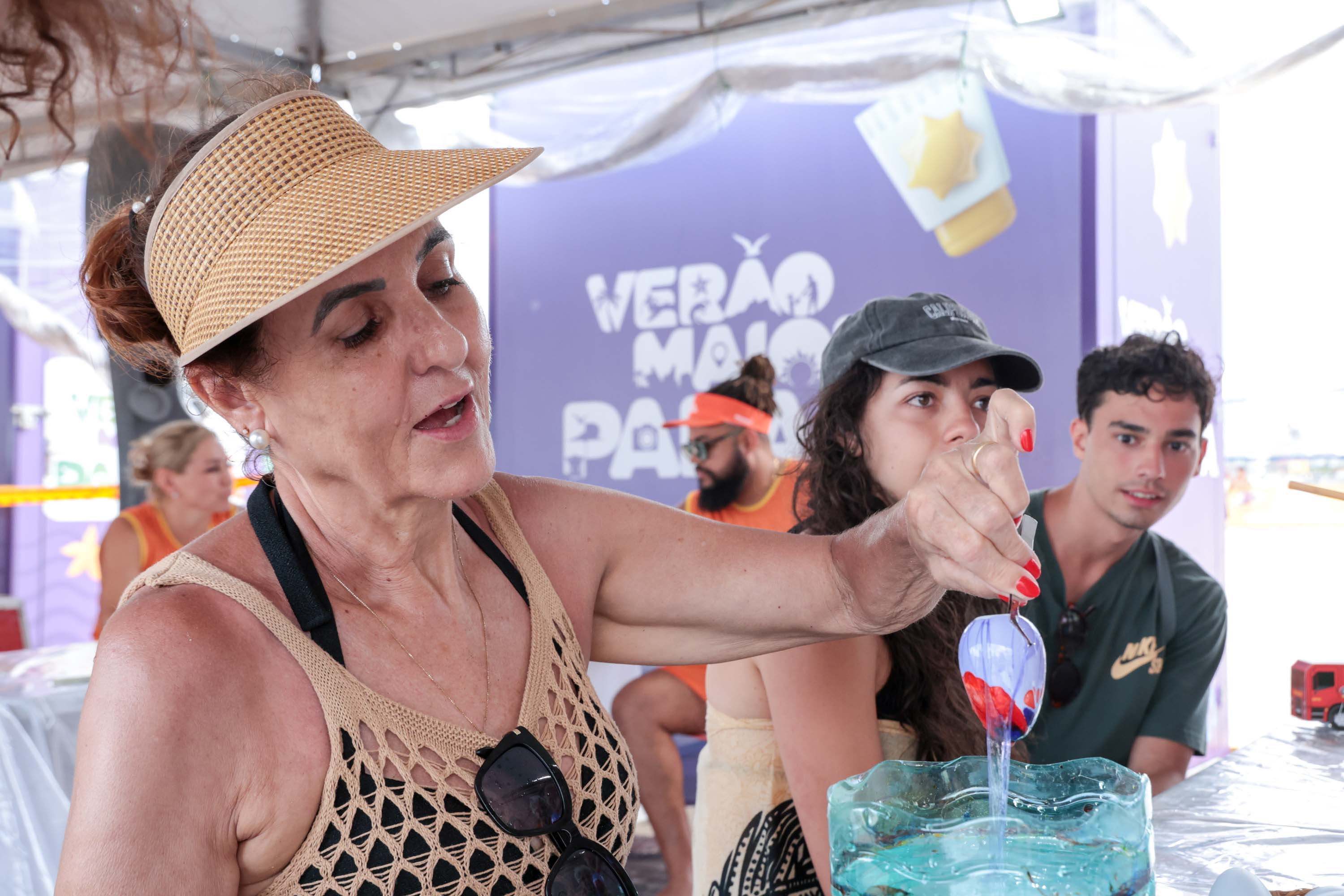 A veranista Ana Maria afirmou que o artesanato ajudou a aliviar o estresse. “Eu faço artesanato para desestressar e fiquei muito feliz de participar aqui no Verão Maior Paraná”, relatou.